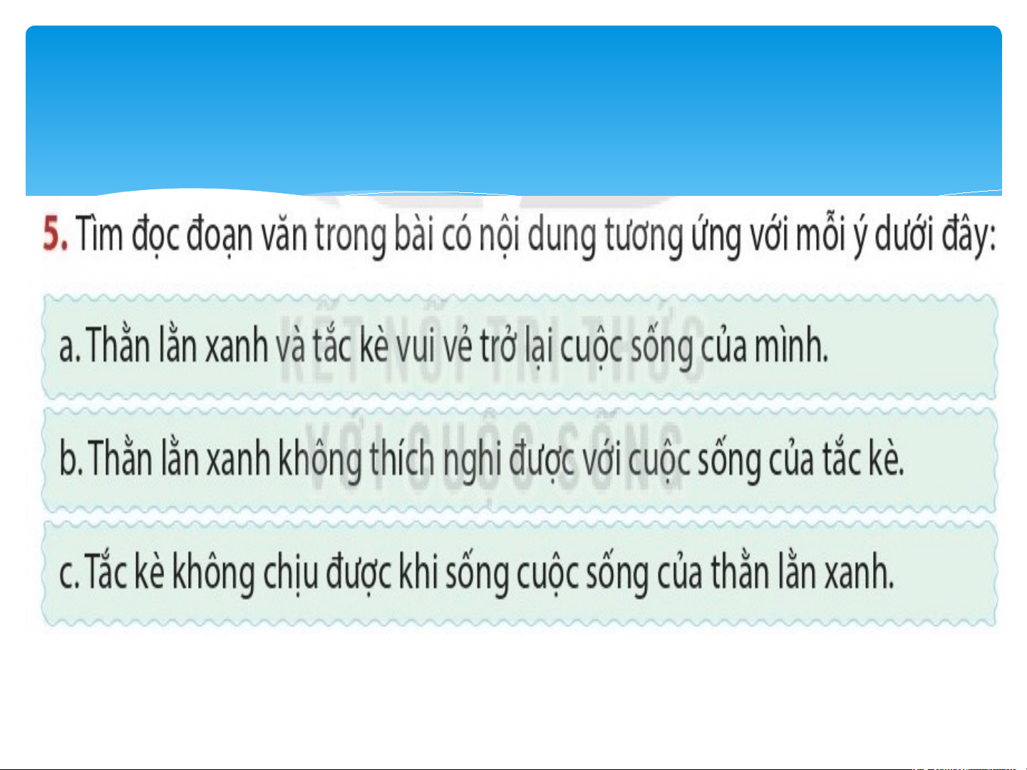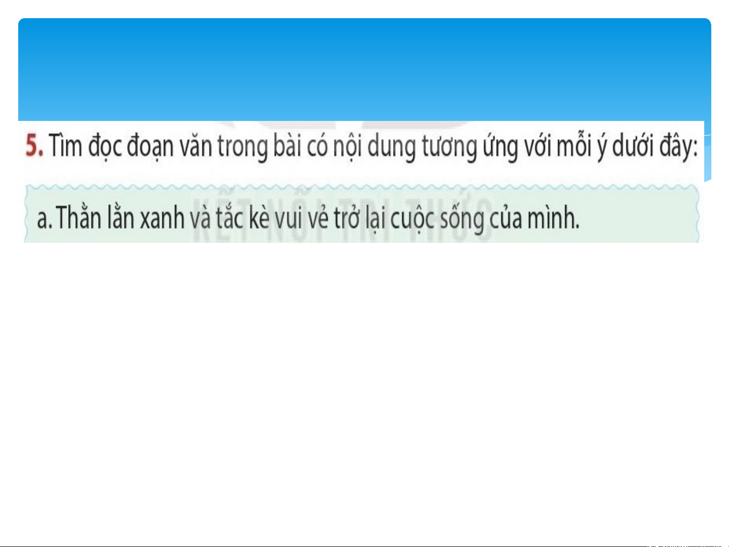 Bài 5: THẰN LẰN XANH VÀ TẮC KÈ ĐỌC VĂN BẢN Bài 5: THẰ M N ột hLẰ ọc N si nX h A đ NH ọc t oV à À n bT à Ắ i C KÈ