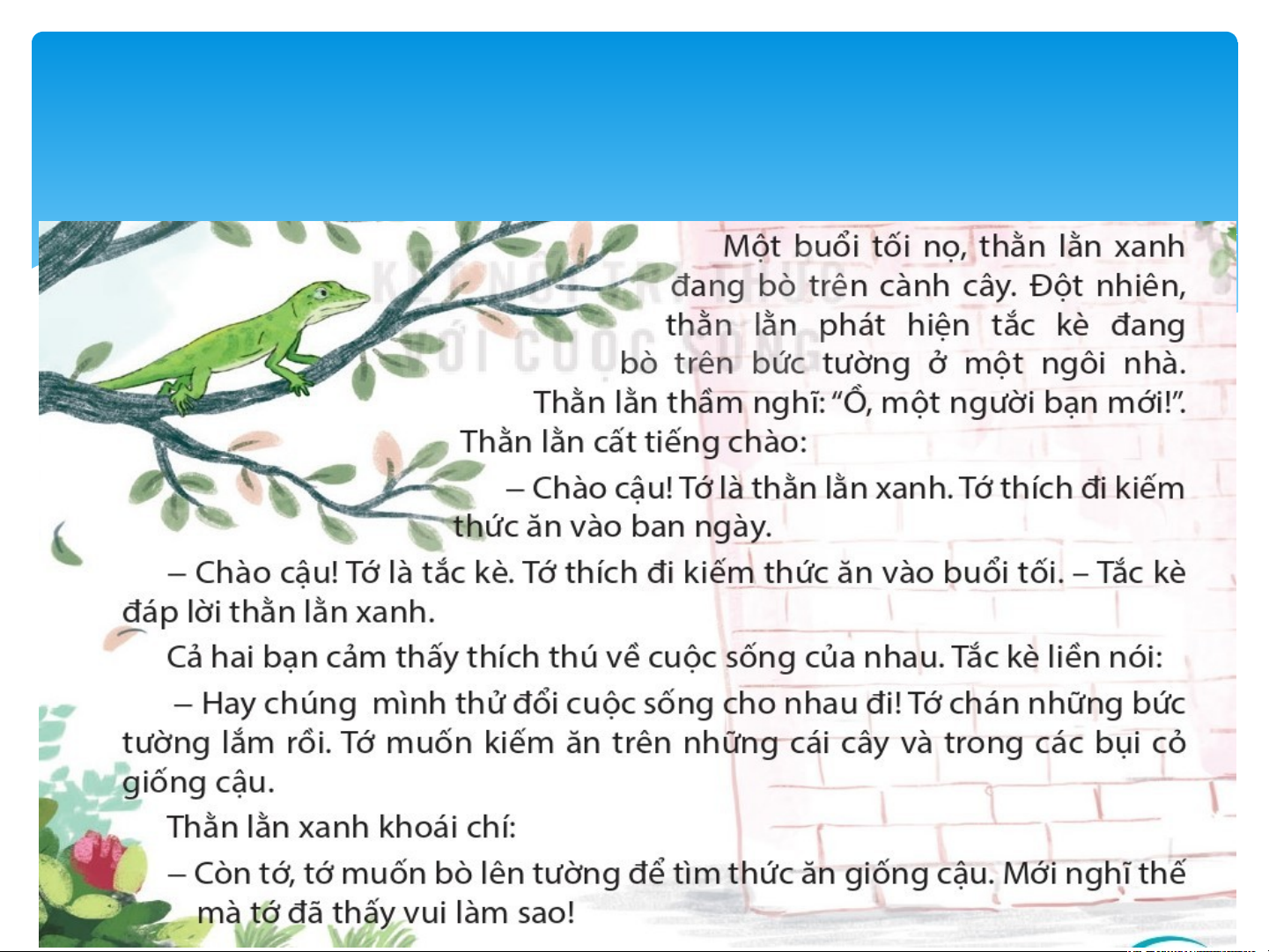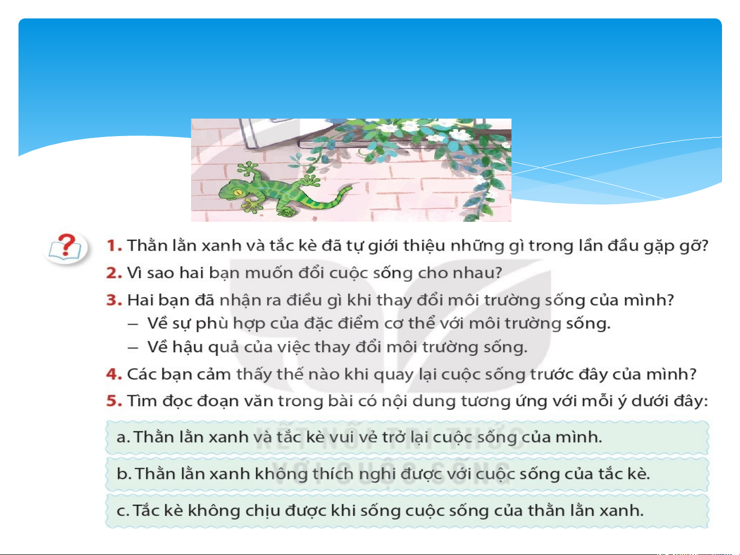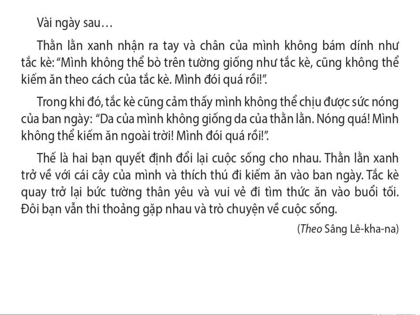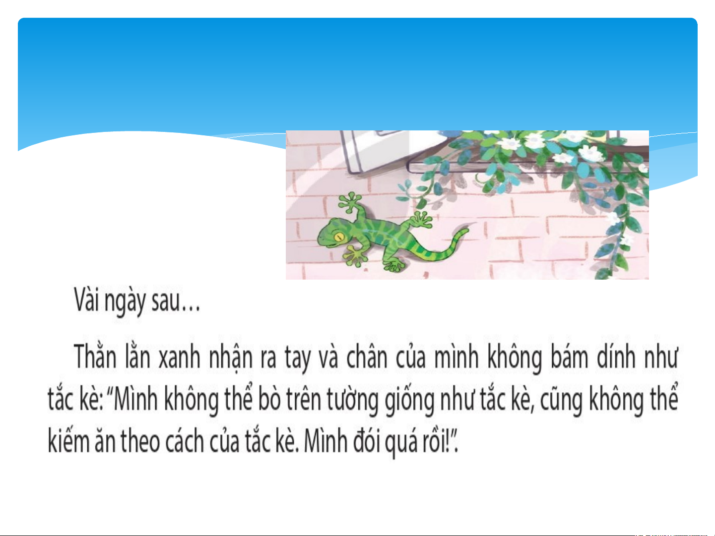 “Thằn lằn xanh nhận ra tay và chân của mình không bám dính như tắc kè.” ….. TRẢ LỜI CÂU HỎI