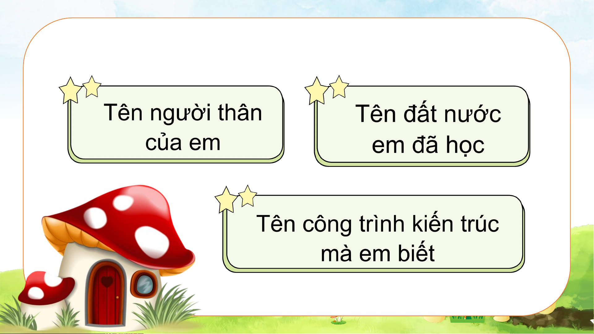 1. Tìm 2 – 3 tên riêng theo yêu cầu ghi trên mỗi thẻ: Làm bài vào Vở bài tập CHIA SẺ CHIA SẺ NHÓM ĐÔI TRƯỚC LỚP