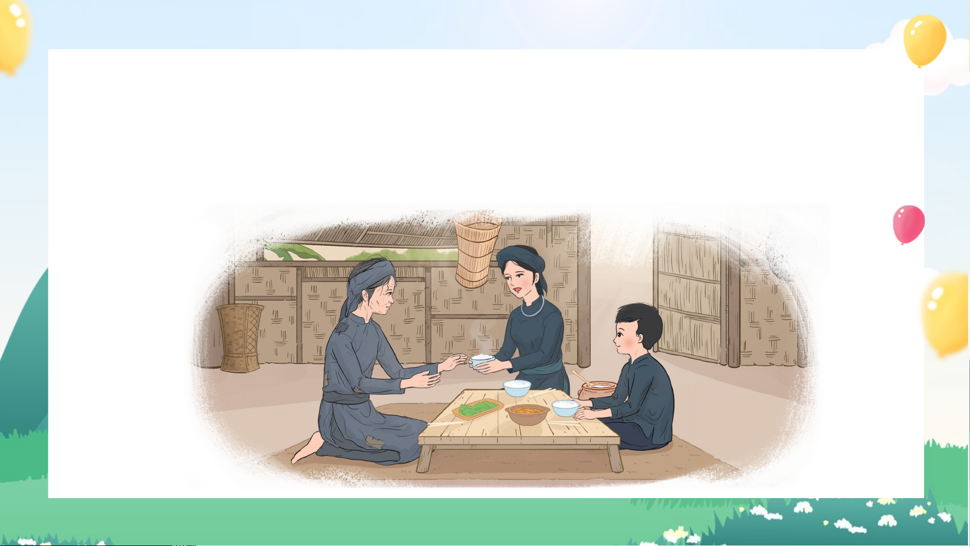 những gì để cứu giúp dân làng? Hai mẹ con lấy 2 mảnh vỏ trấu thả xuống nước, vỏ trấu biến thành thuyền rồi ra sức cứu vớt người gặp nạn.