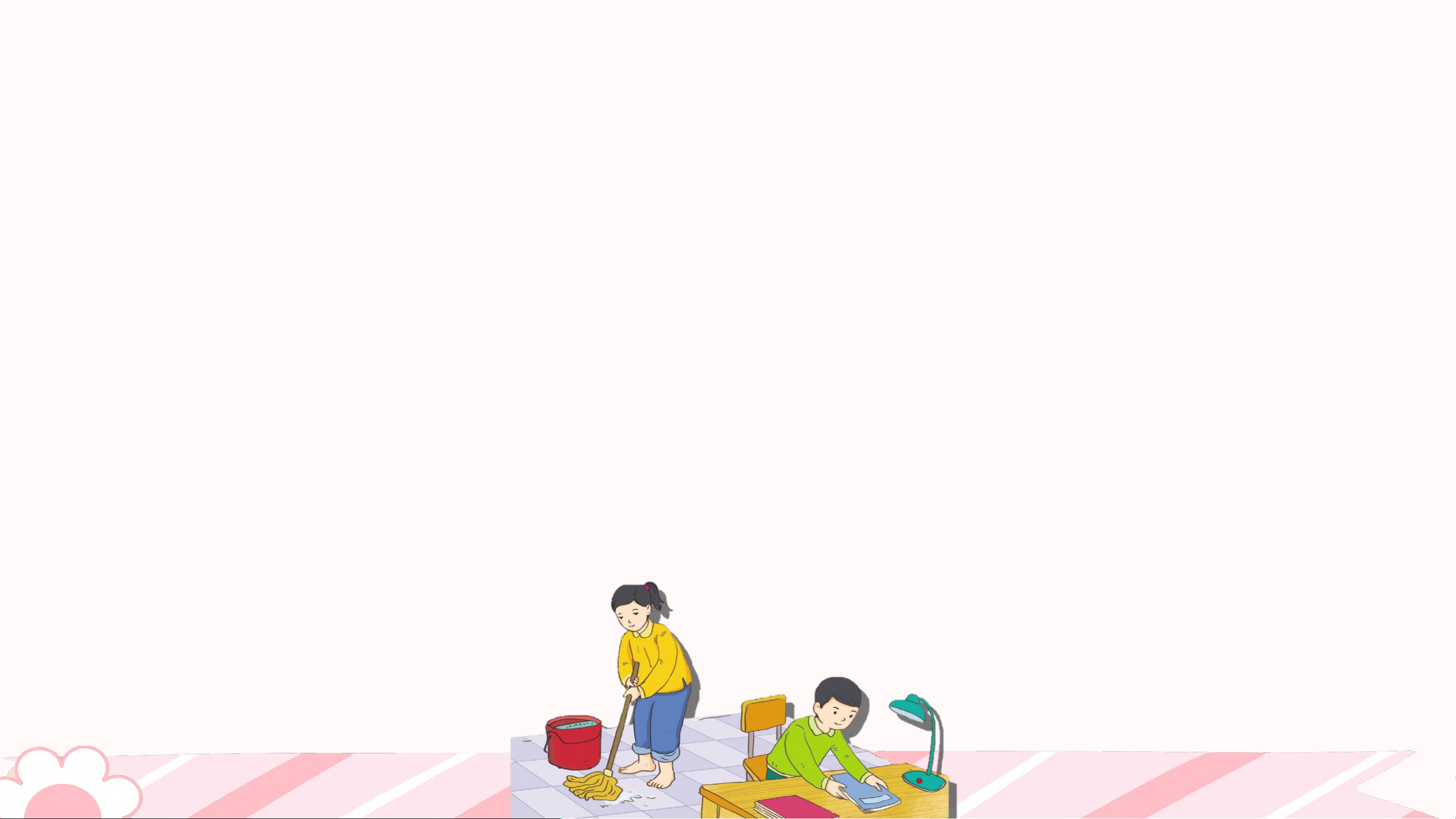 Giá các con biết bảo nhau thì nhà đã quét xong từ lâu rồi. Con chị, con nên nhường nhịn em. Em sẽ