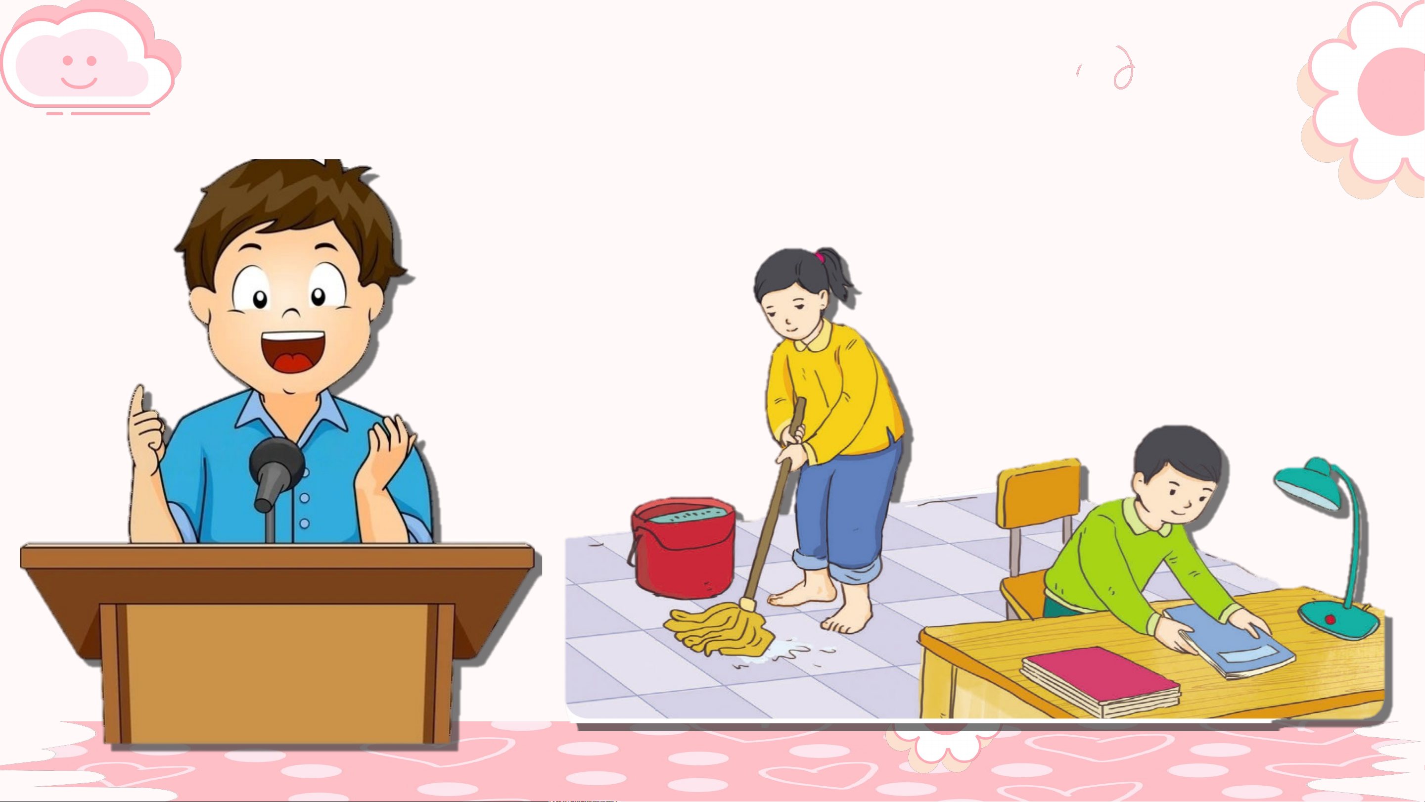 quét tước, dọn dẹp. Thương mẹ vất vả, Hồng nghe lời mẹ hơn.