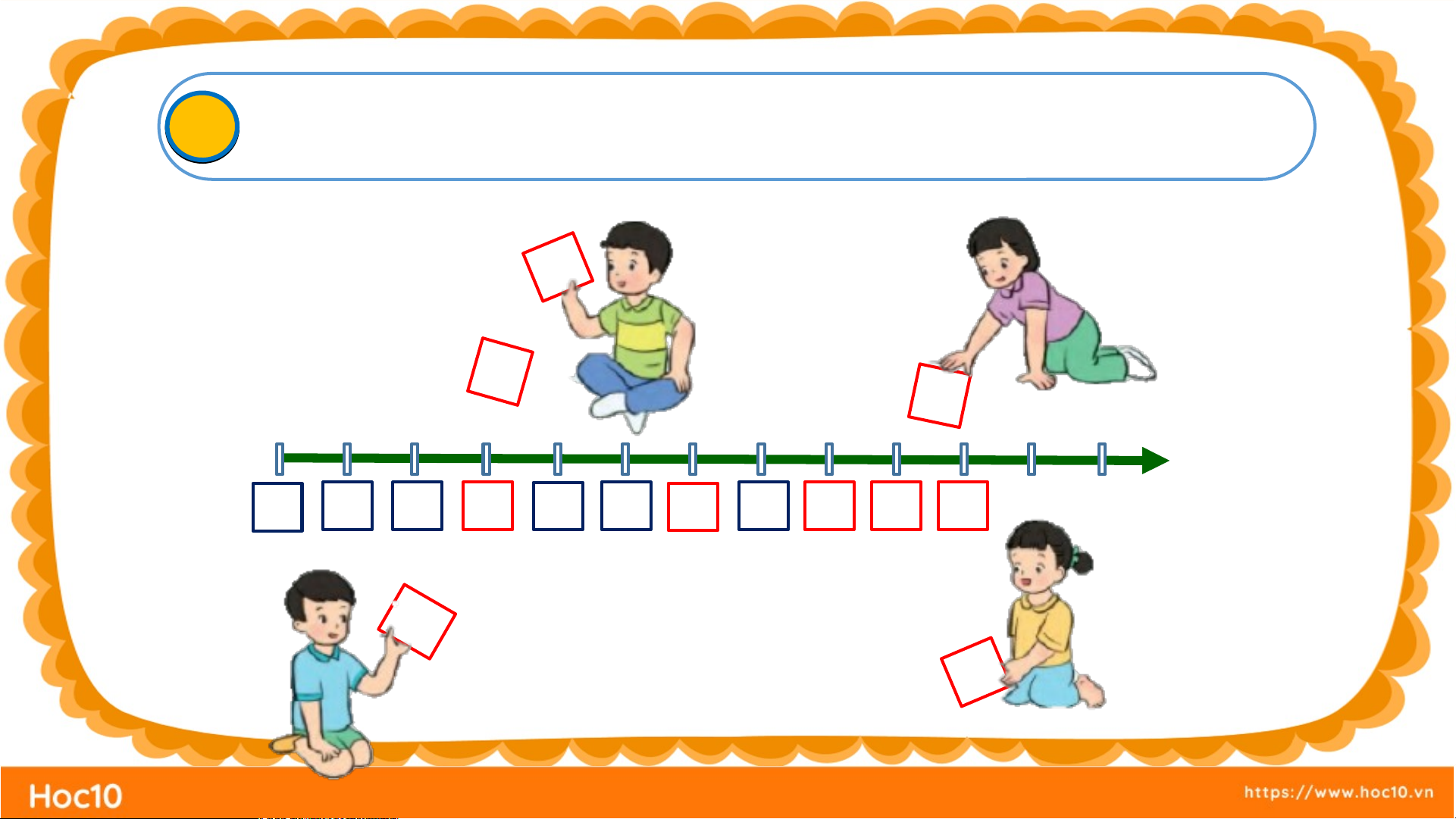 Xếp các thẻ số thích hợp dưới mỗi vạch của tia số