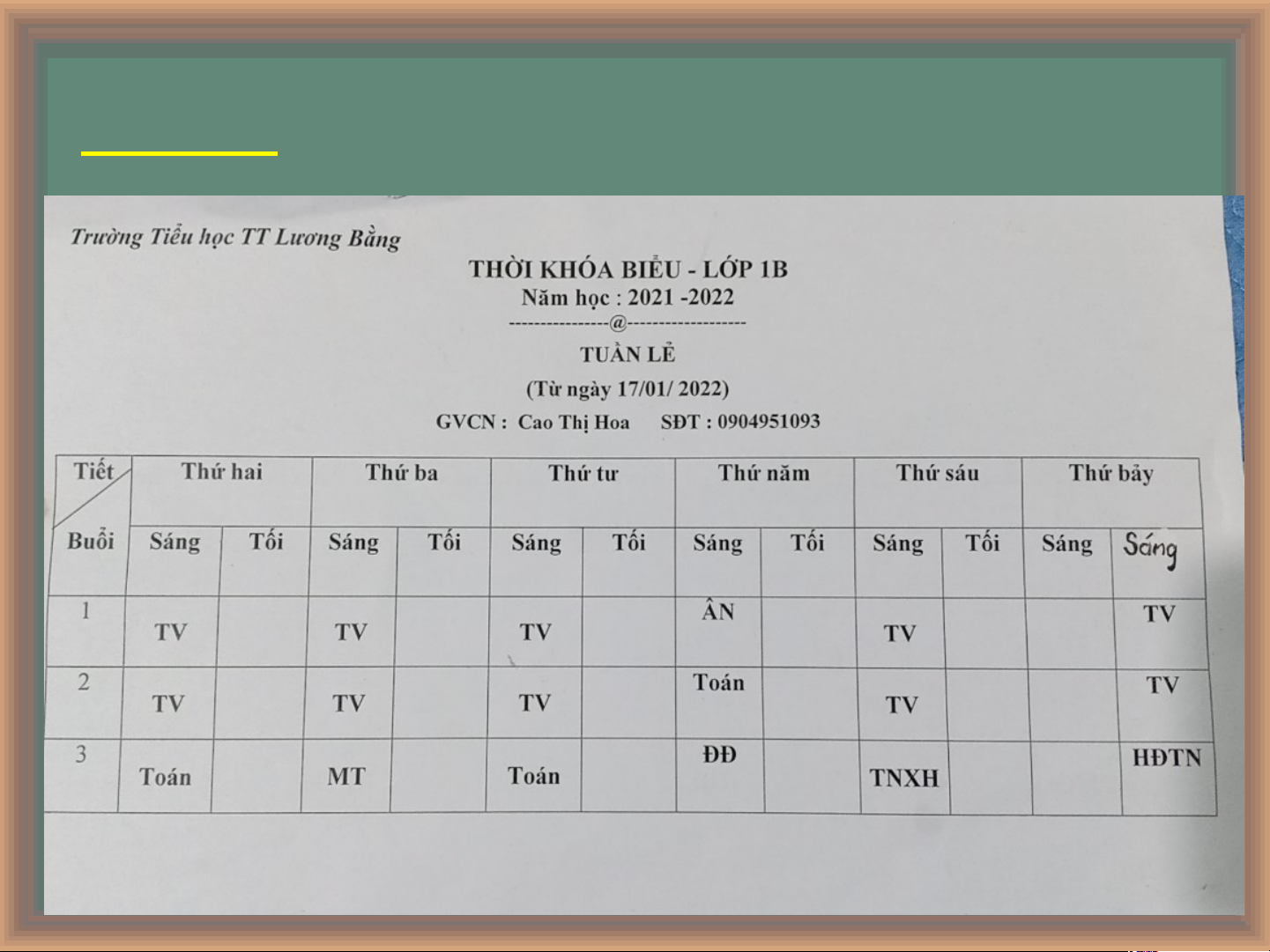 Bài 2: Đọc thời khóa biểu của lớp em. Bài 2: