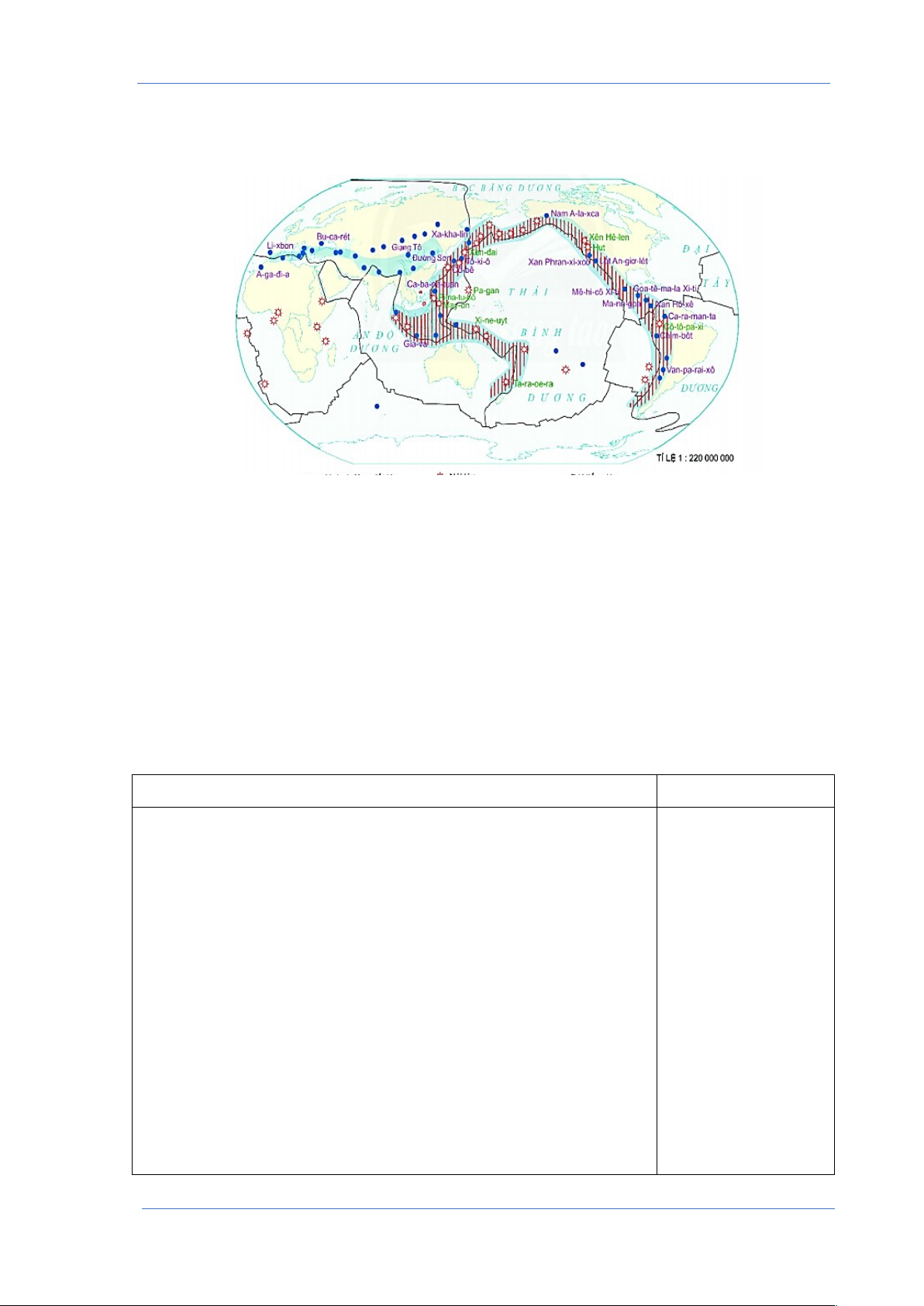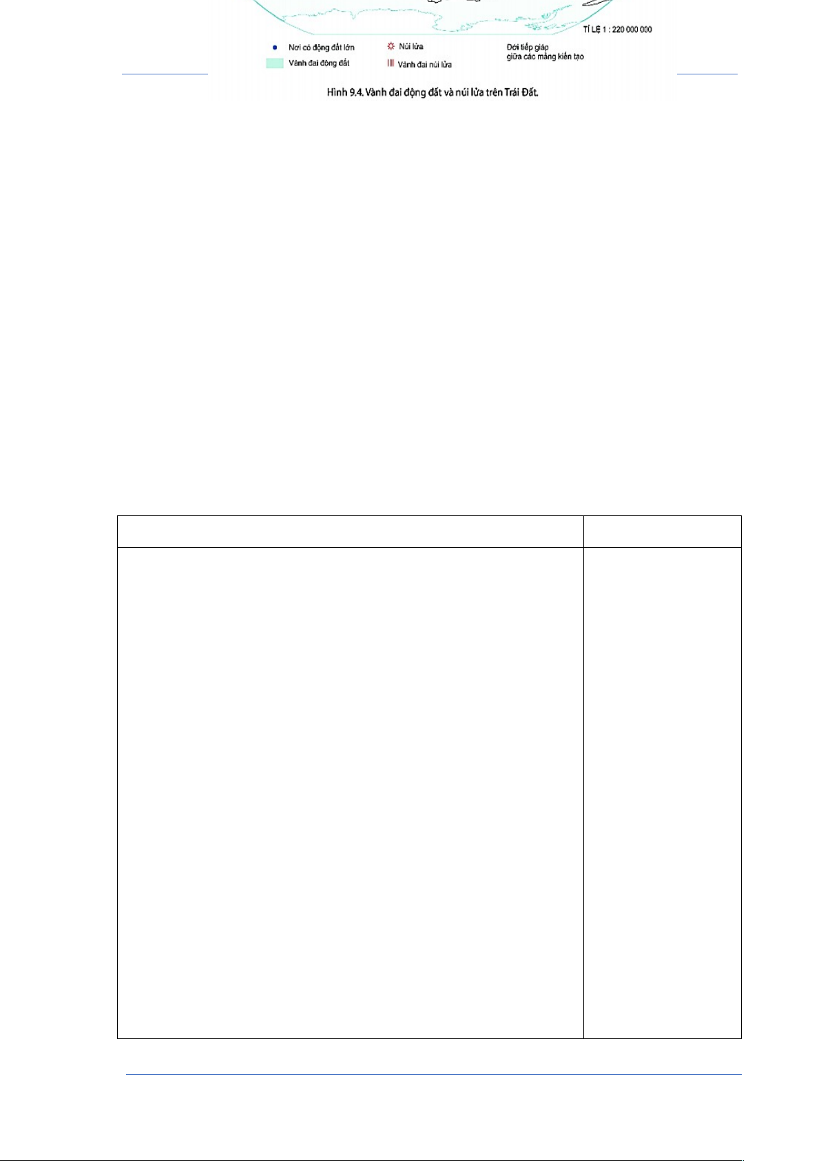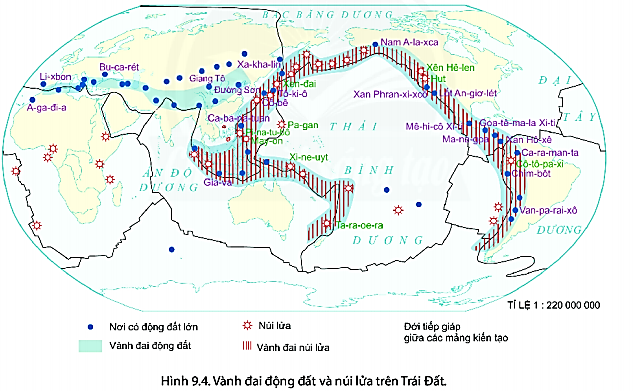 + Sử dụng lược đồ hình 9.4 tr147 để xác định vành đai động đất và núi lửa trên Trái Đất.