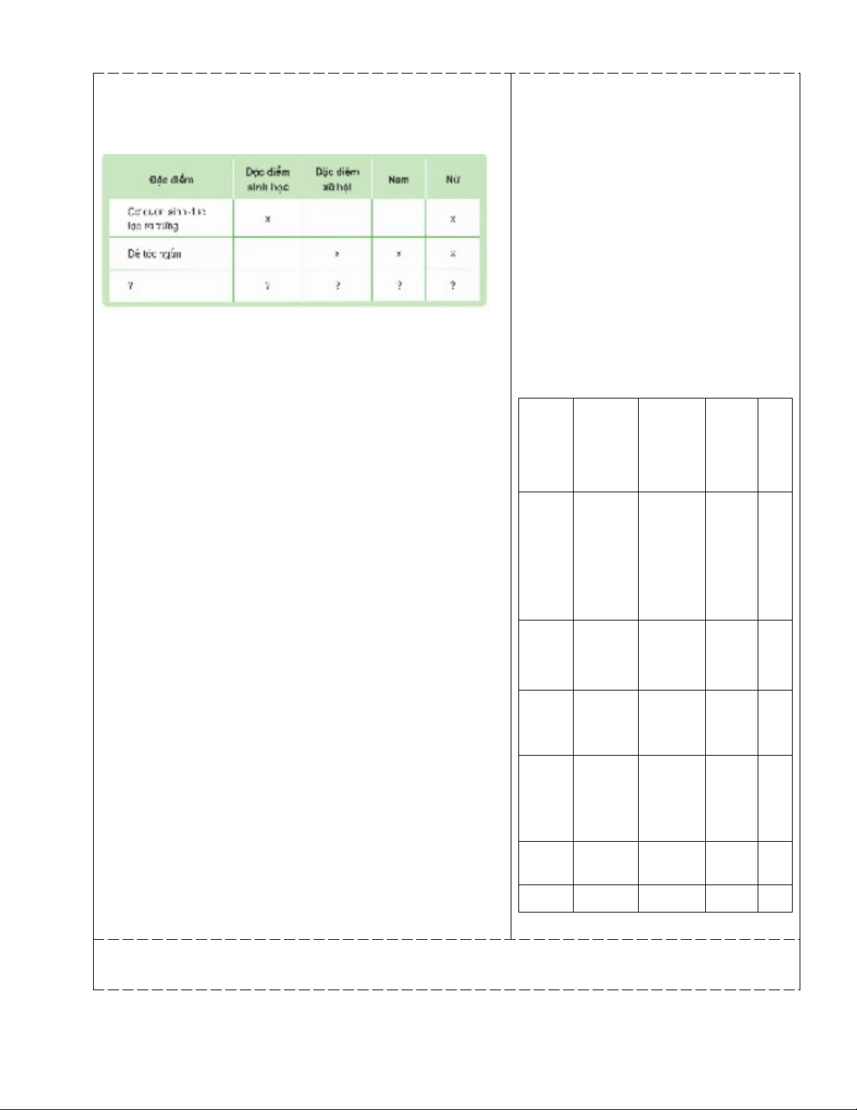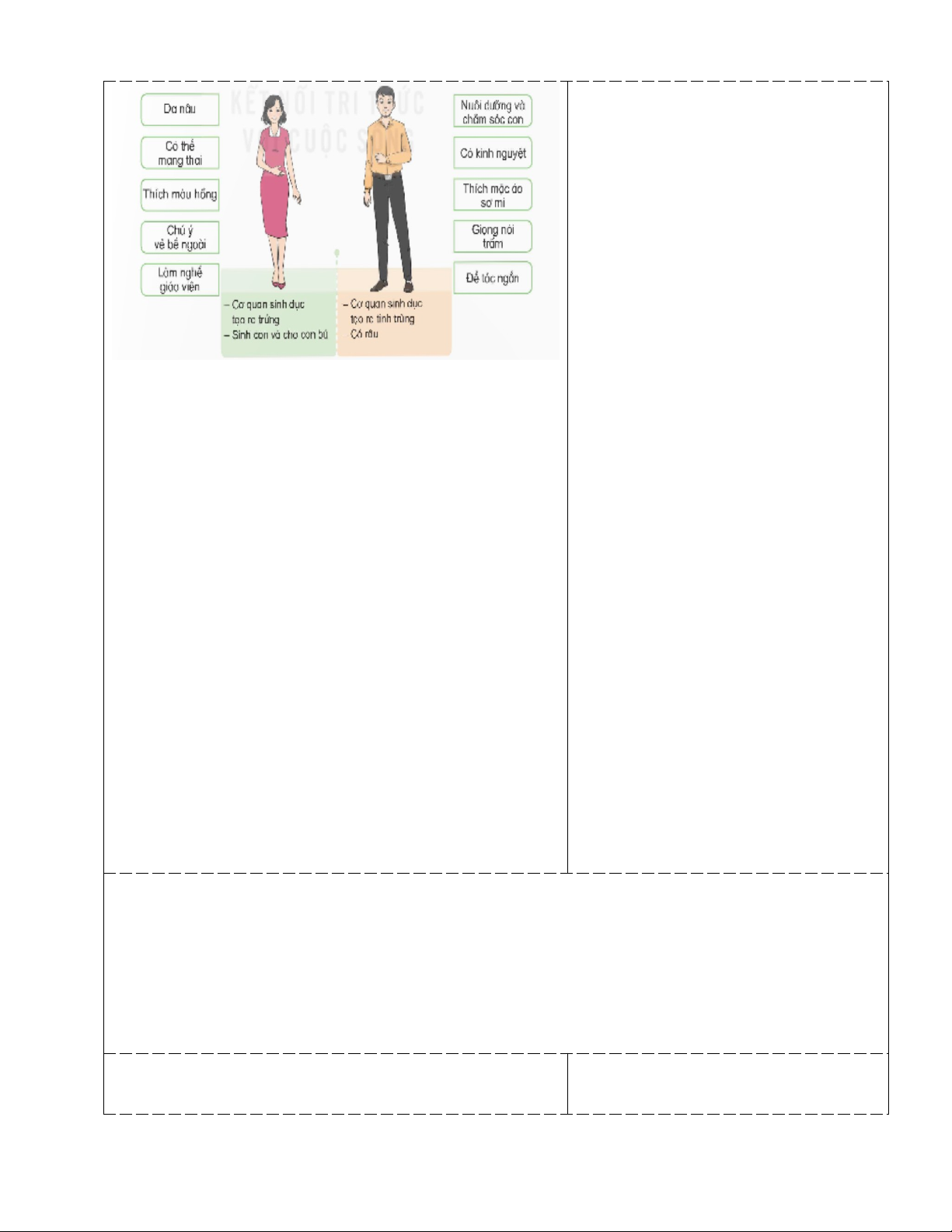 + Phân biệt được đặc điểm sinh học và đặc điểm xã hội của nam và nữ.