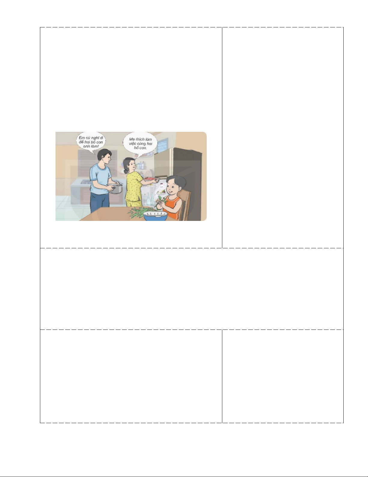 - GV yêu cầu làm việc cá nhân để liệt kê thái độ, hành vi, của em về sự tôn trọng các bạn cùng giới và khác giới. - GV lắng nghe ý kiến chia sẻ của HS. - GV nhận xét. - HS quan sát hình 5: và cho biết các thành viên trong gia đình đã thể hiện sự tôn trọng nhau như thế nào?