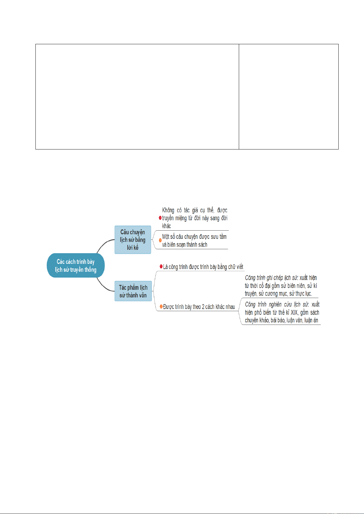 c. Sản phẩm: Sơ đồ tư duy thể hiện các cách trình bày lịch sử truyền thống theo gợi ý.