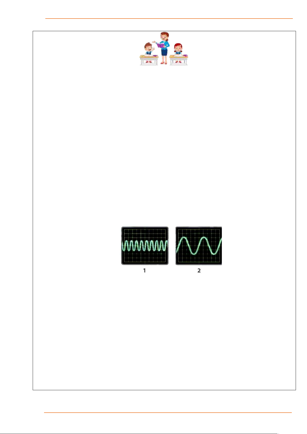 Câu 11. Hai sóng âm 1 và 2 được hiển thị trên màn hình dao động kí. Tỉ lệ trên các ô