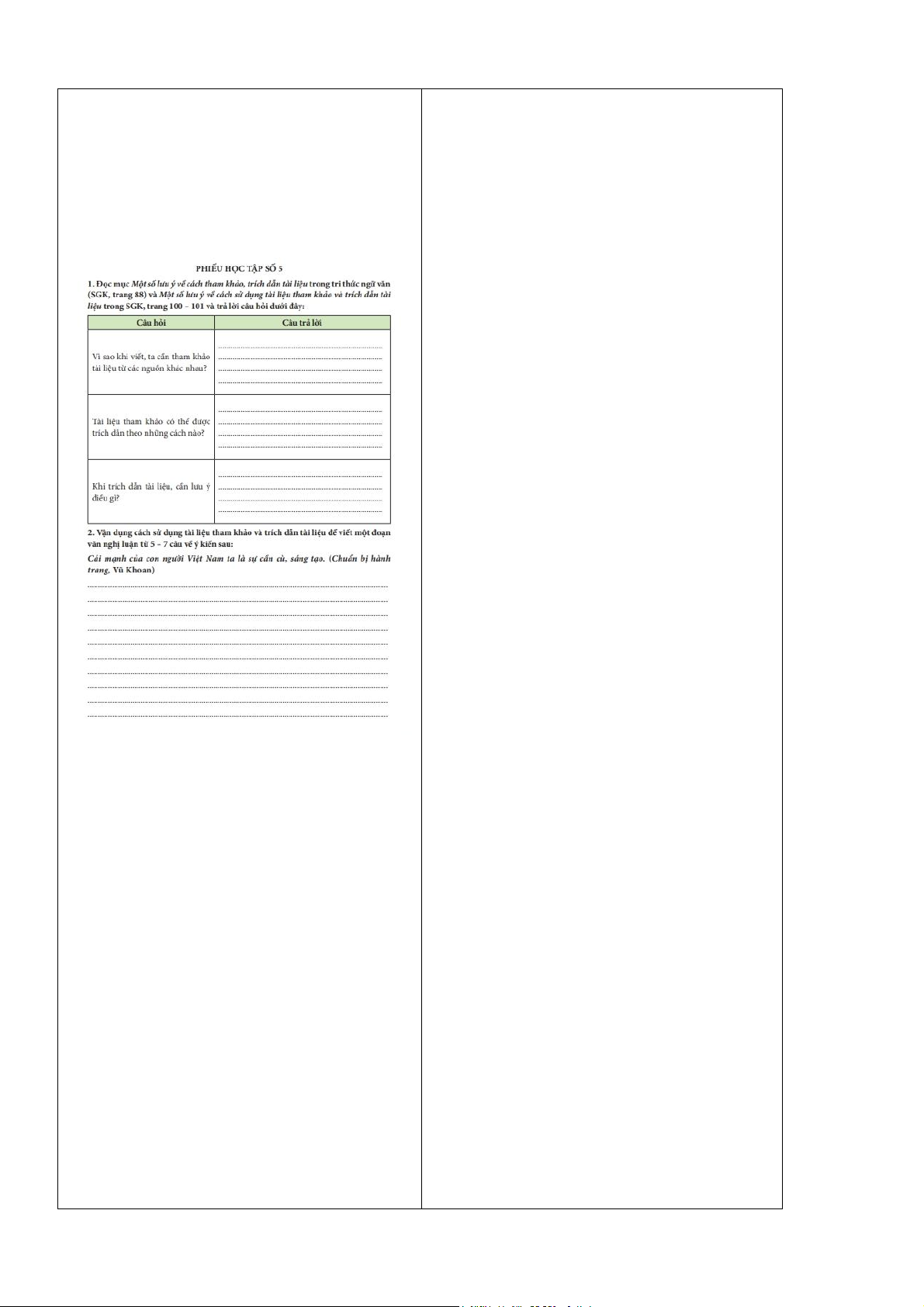 - Năng lực biết dùng dấu câu khi dẫn trực tiếp và gián tiếp; tham khảo, trích dẫn tài