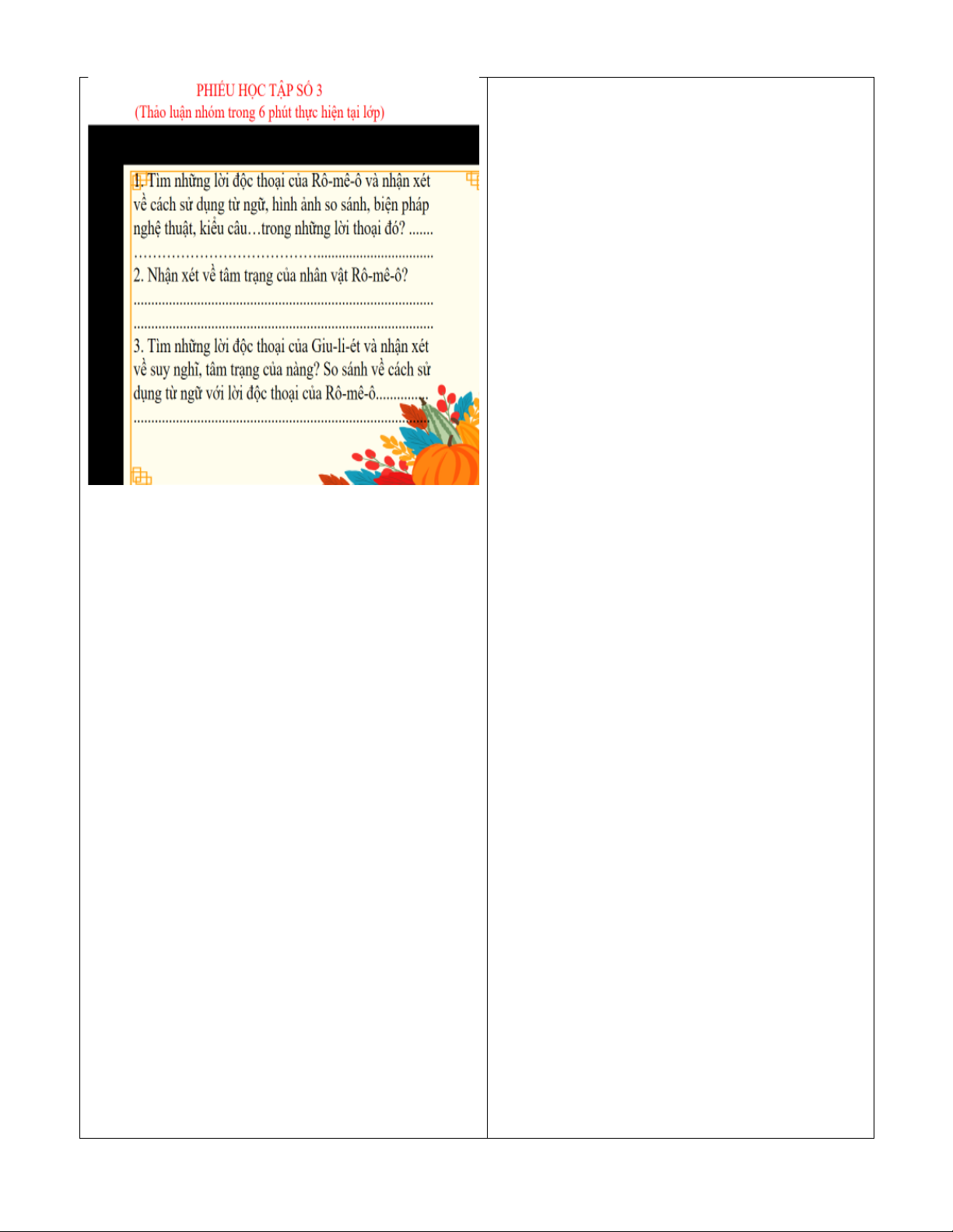 Yêu cầu HS tiếp tục quan sát phiếu học tập đã cảm.