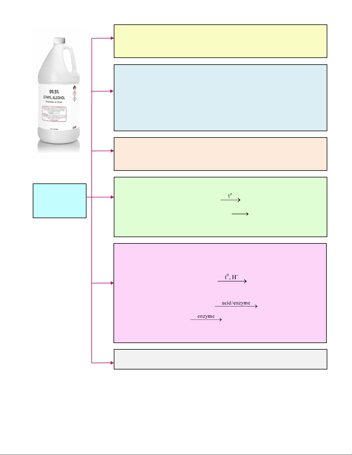 – Từ ethylene: CH2=CH2 + H2O C2H5OH – Từ tinh bột: (C6H10O5)n + nH2O C6H12O6 C6H12O6 2C2H5OH + 2CO2