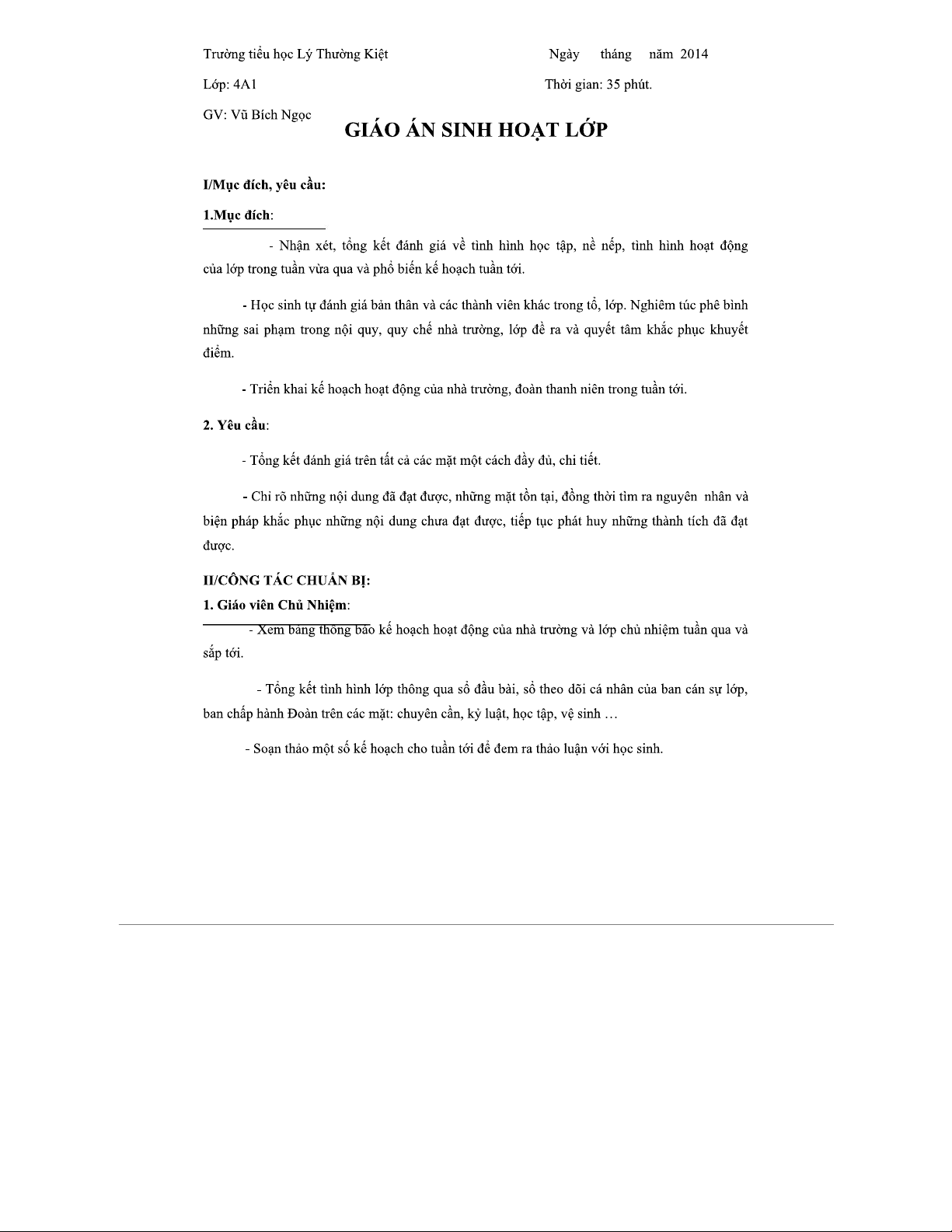 Giáo Án Sinh Hoạt Lớp 4A1 - GA Sinh Hoạt Lớp 35 Phút