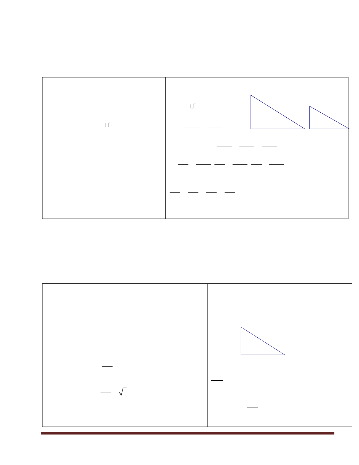 giác của 3 góc đặc biệt 300, 450, 600. Các hệ thức liên hệ giữa các tỉ số lượng giác của hai góc phụ nhau.