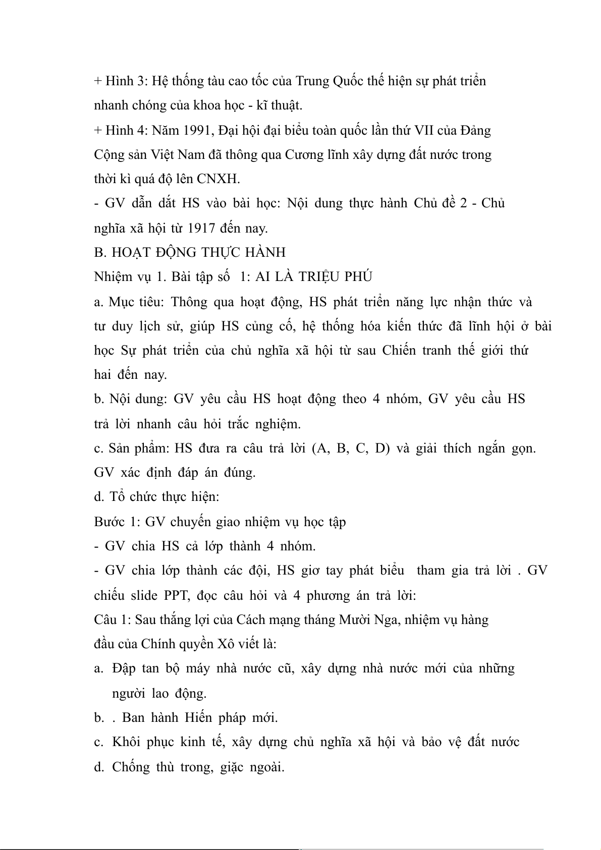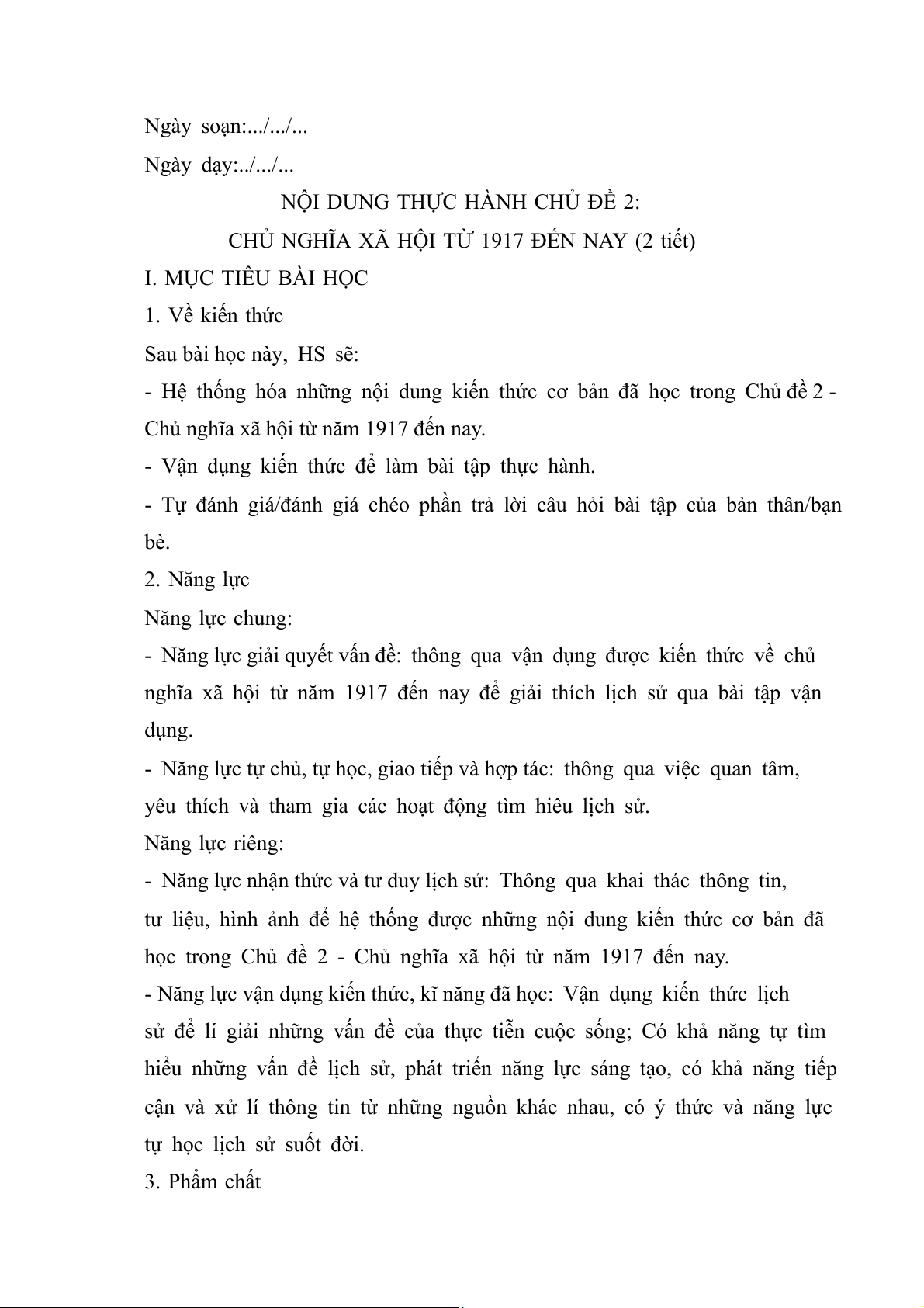CHỦ NGHĨA XÃ HỘI TỪ 1917 ĐẾN NAY (2 tiết)