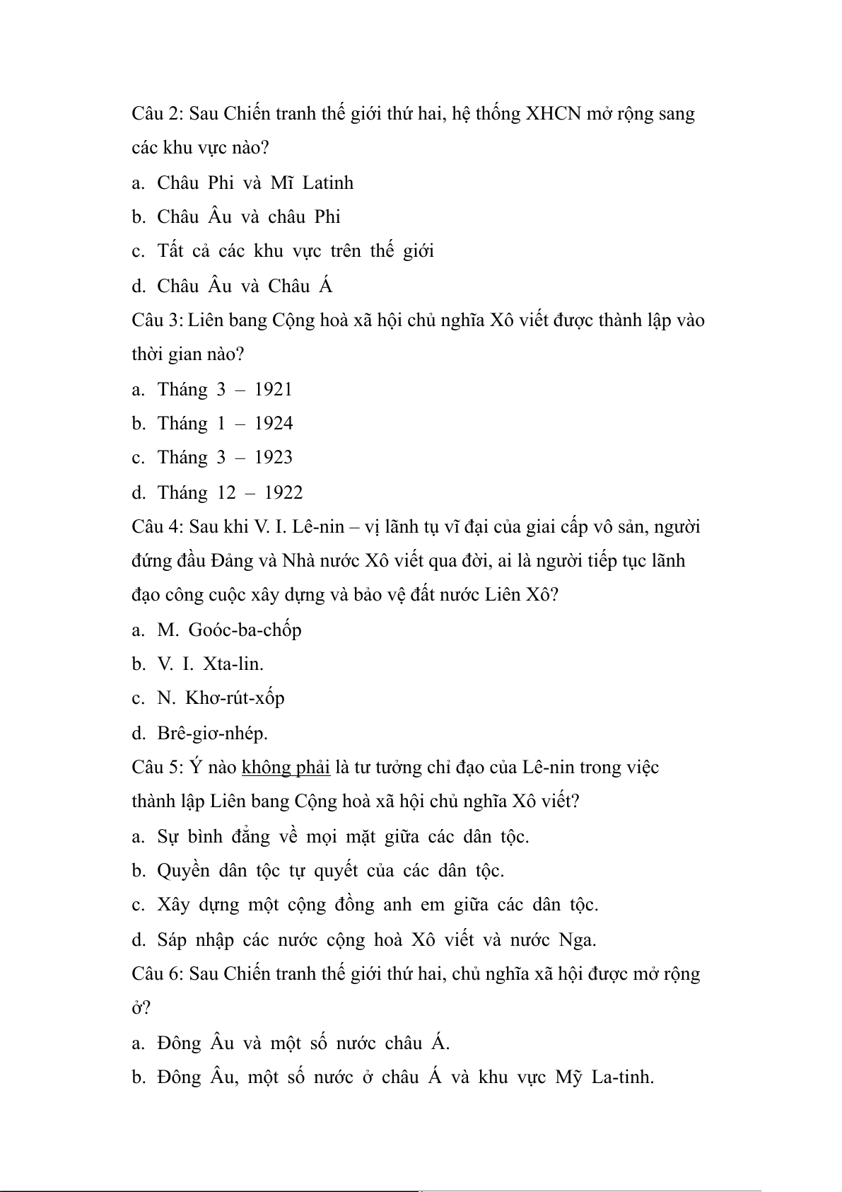 Câu 2: Sau Chiến tranh thế giới thứ hai, hệ thống XHCN mở rộng sang