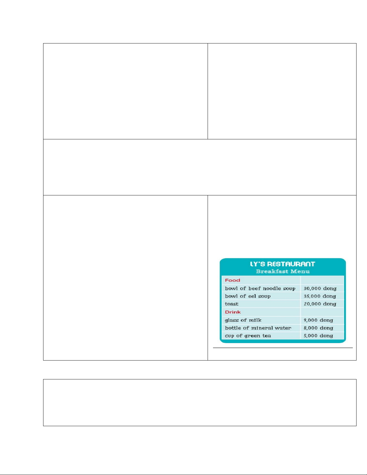 - Understand and use ways to ask and answer about prices and favourite food and