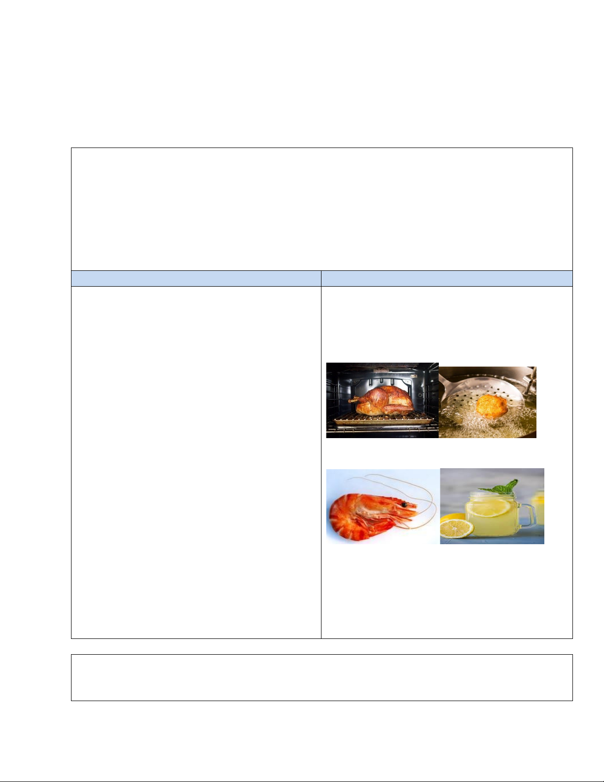 - roast (v) , fry (v) , shrimp (n) , lemonade (n) , mineral (adj)
