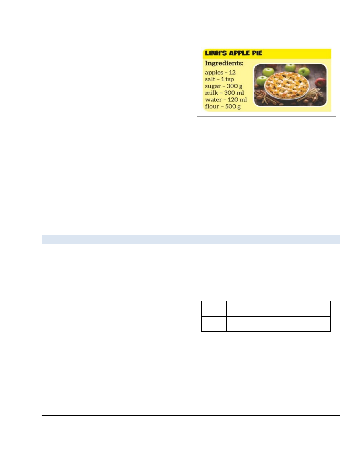 the table to ask and answer about the recipes.