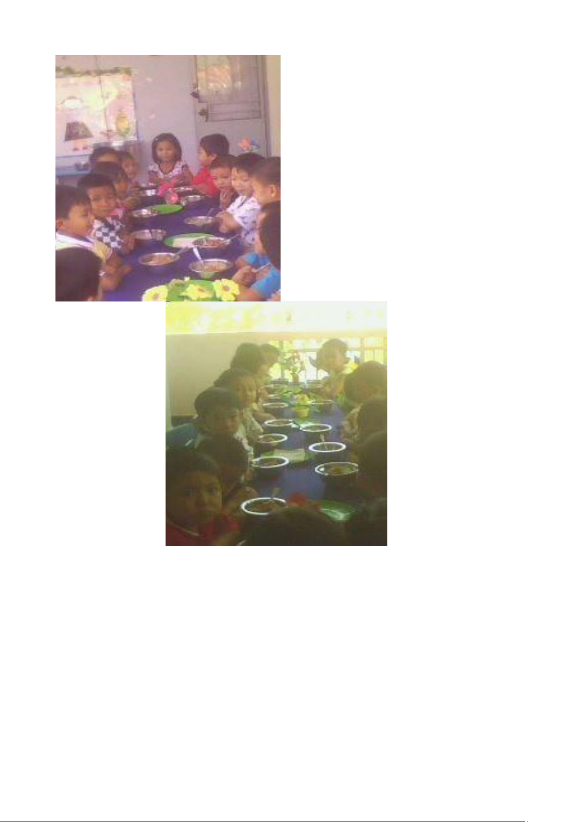 giờ ăn cô chuẩn bị đầy đủ đĩa đựng cơm rơi, khăn lau tay. Đồng thời trang trí bàn