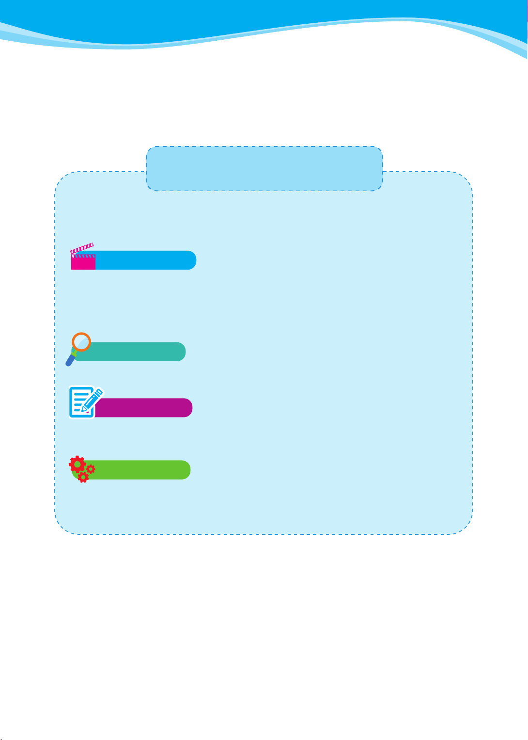 Dưới sự hướng dẫn của thầy cô giáo, các em sẽ thực hiện 4 hoạt động: Khởi động,
