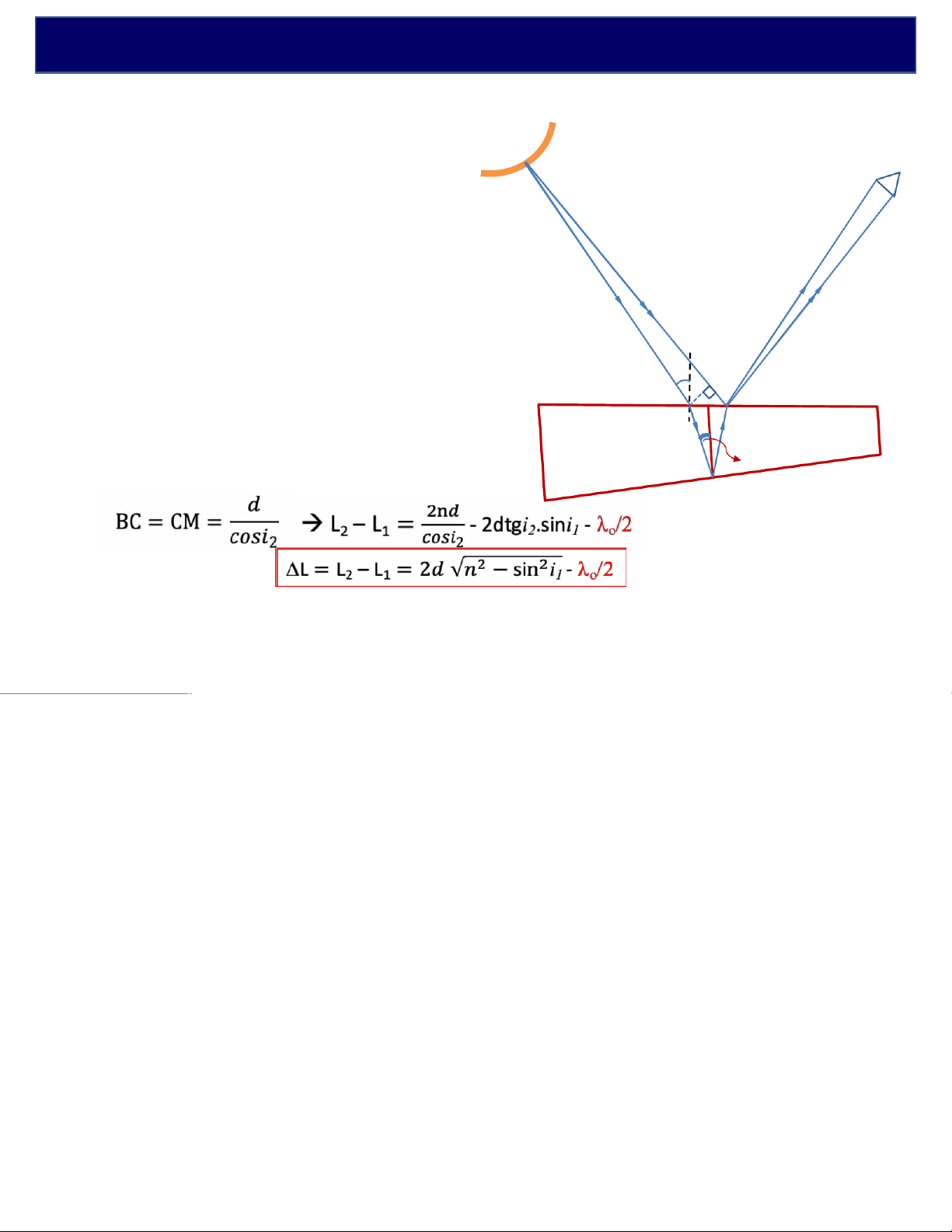 ØCác tia chiếu đến bản mỏng tại điểm M: O -i1:góc tới -i - Tia phản xạ OM (1) 2:góc khúc xạ - Tia khúc xạ OBCM (2)