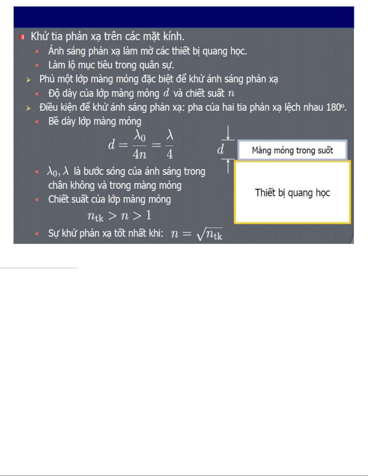 Mỗi vân sáng/tối ứng với một giá trị xác định của dàvân cùng độ dày.
