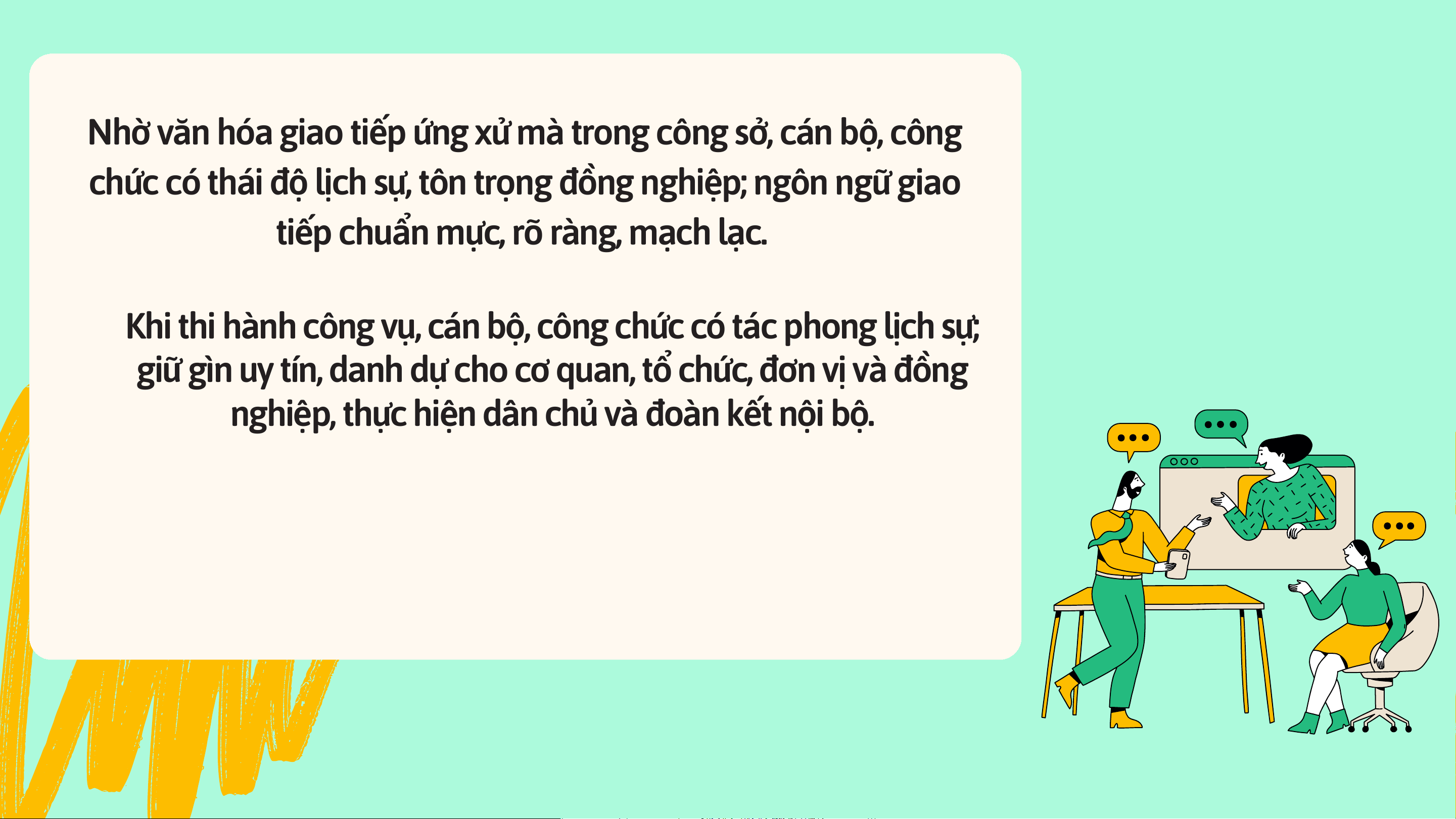 Nhờ văn hóa giao tiếp ứng xử mà trong công sở, cán bộ, công hóa giao tiếp,