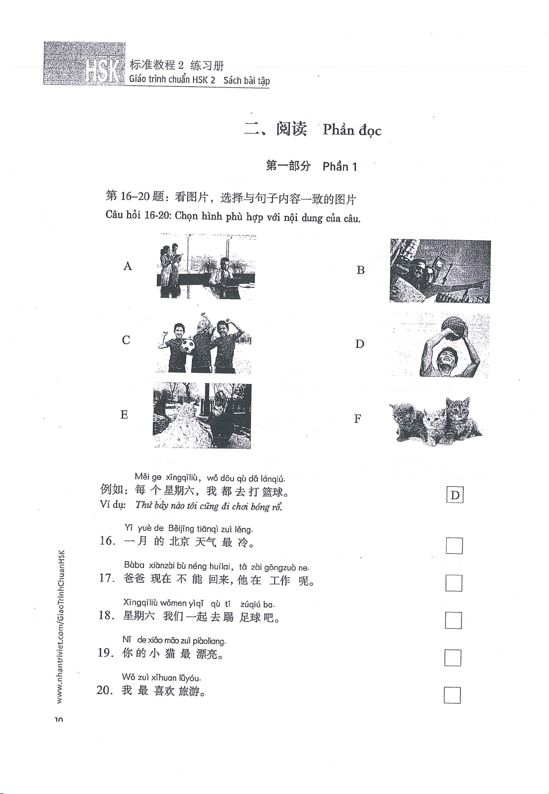 Giáo trình chuẩn HSK 2 sách bài tập | Trường Đại học Ngoại ngữ, Đại học Quốc gia Hà Nội. Tài liệu giúp bạn tham khảo, ôn tập và đạt kết quả cao. Mời đọc đón xem!