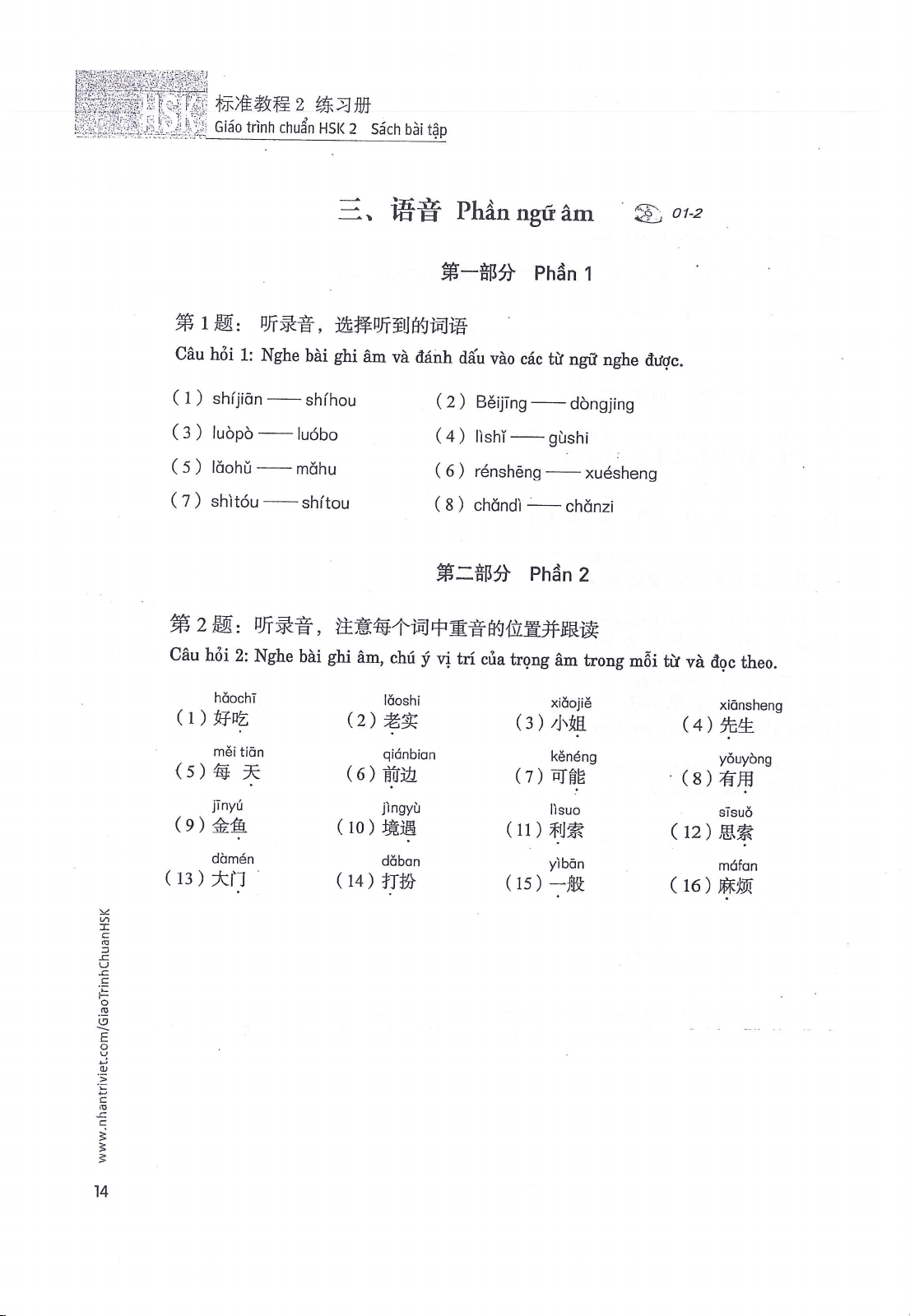 Giáo trình chuẩn HSK 2 sách bài tập | Trường Đại học Ngoại ngữ, Đại học Quốc gia Hà Nội