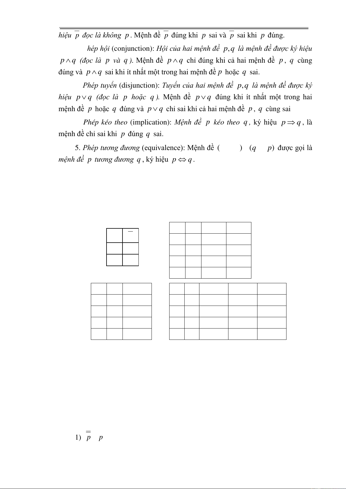 4. Phép kéo theo (implication): Mệnh đề p kéo theo q , ký hiệu p q , là