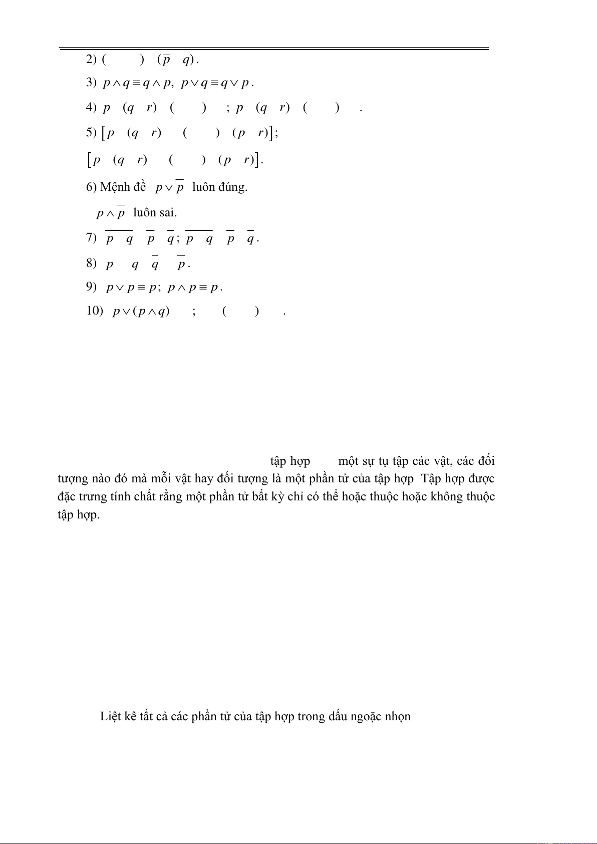 10) p ( p q) p; p ( p q) p . luật hấp thu. 1.2. TẬP HỢP