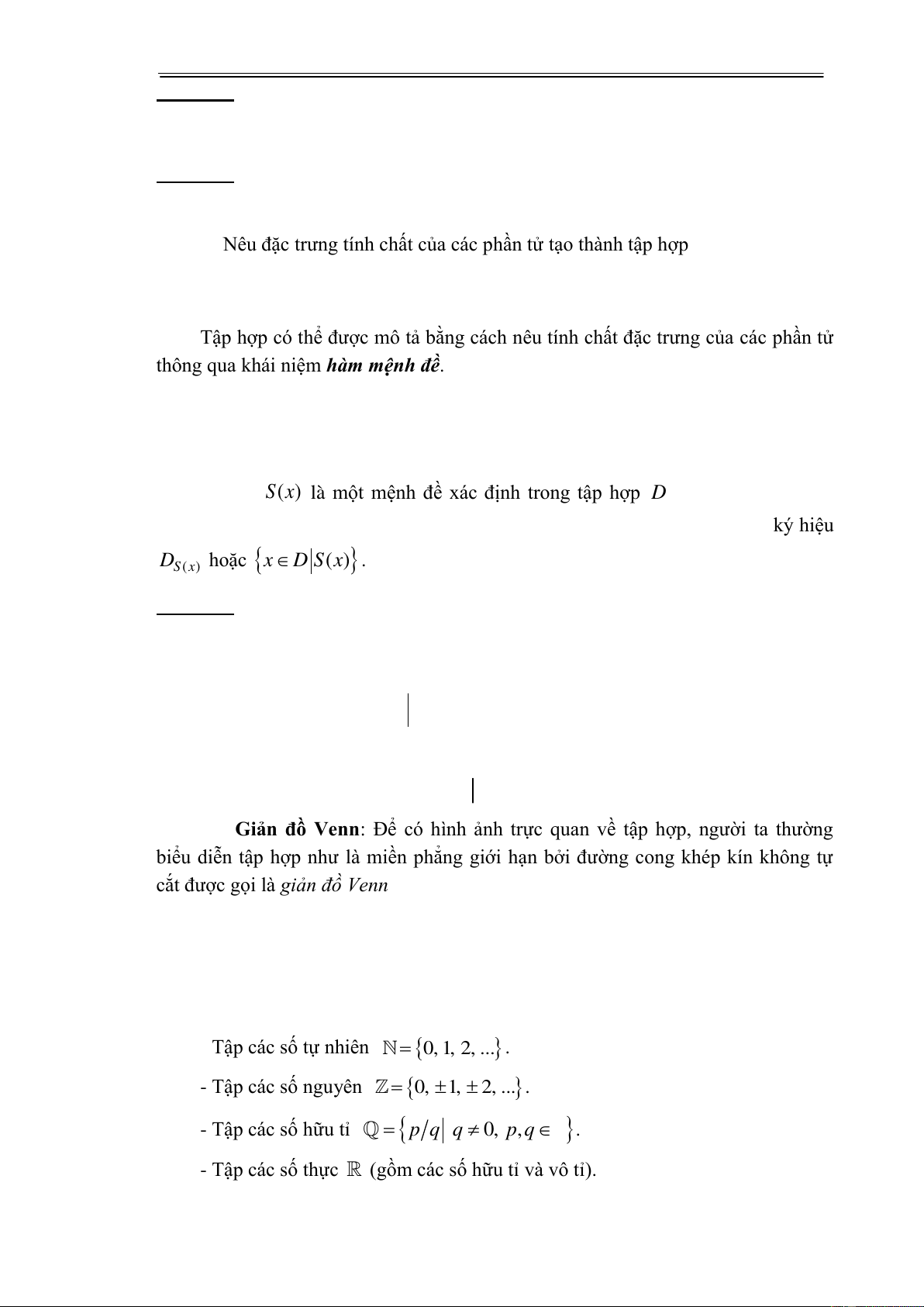 Giả sử S(x) là một mệnh đề xác định trong tập hợp D , ta gọi tập hợp các