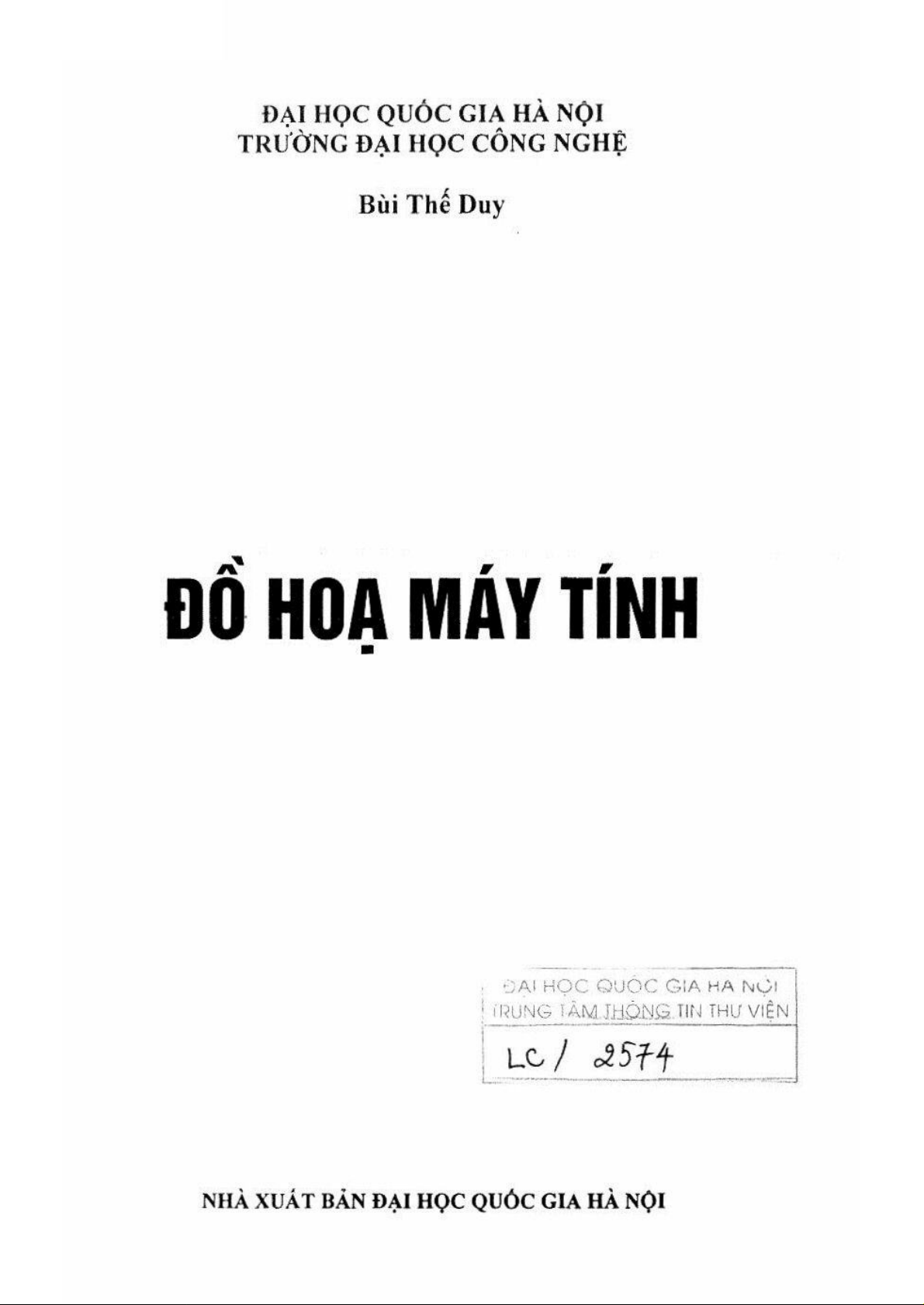 Giáo trình Đồ hoạ máy tính môn Kiến trúc máy tính | Trường Đại học Công nghệ, Đại học Quốc gia Hà Nội