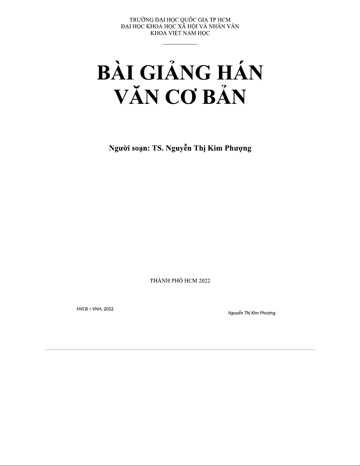 GIÁO TRÌNH HÁN VĂN CƠ BẢN (HVCB – VNH) – 2022