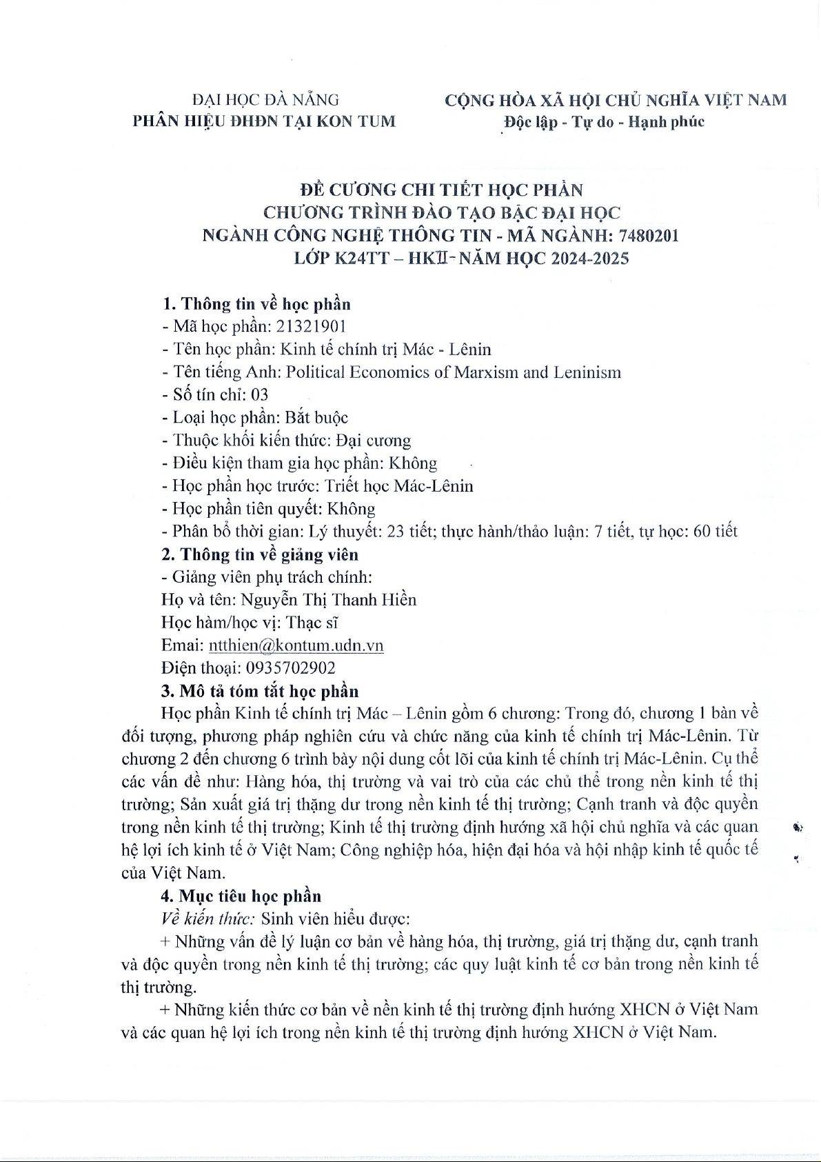 Đề cương môn Kinh tế chính trị–Trường Đại học bách khoa - Đại học đà nẵng.