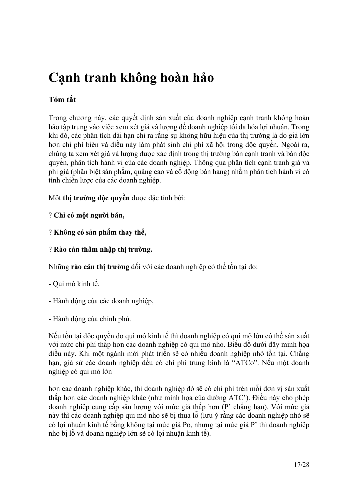 nhỏ bị lỗ và doanh nghiệp lớn sẽ có lợi nhuận kinh tế). 17/28
