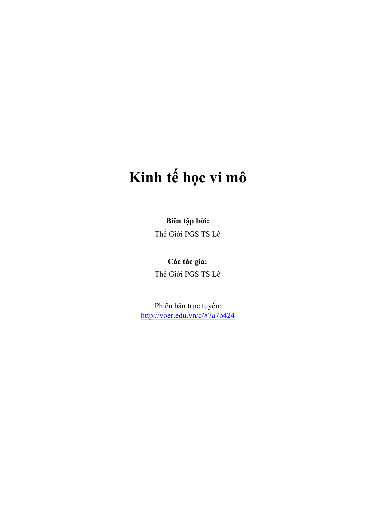 Kinh tế học vi mô Biên tập bởi: Thế Giới PGS TS Lê Kinh tế học vi mô Biên tập bởi: Thế Giới PGS TS Lê Các tác giả: Thế Giới PGS TS Lê Phiên bản trực tuyến: http://voer.edu.vn/c/87a7b424 MỤC LỤC 1. Lời mở đầu