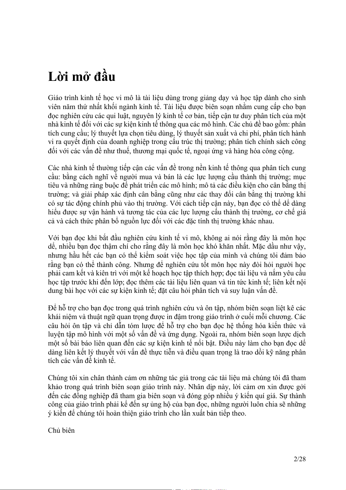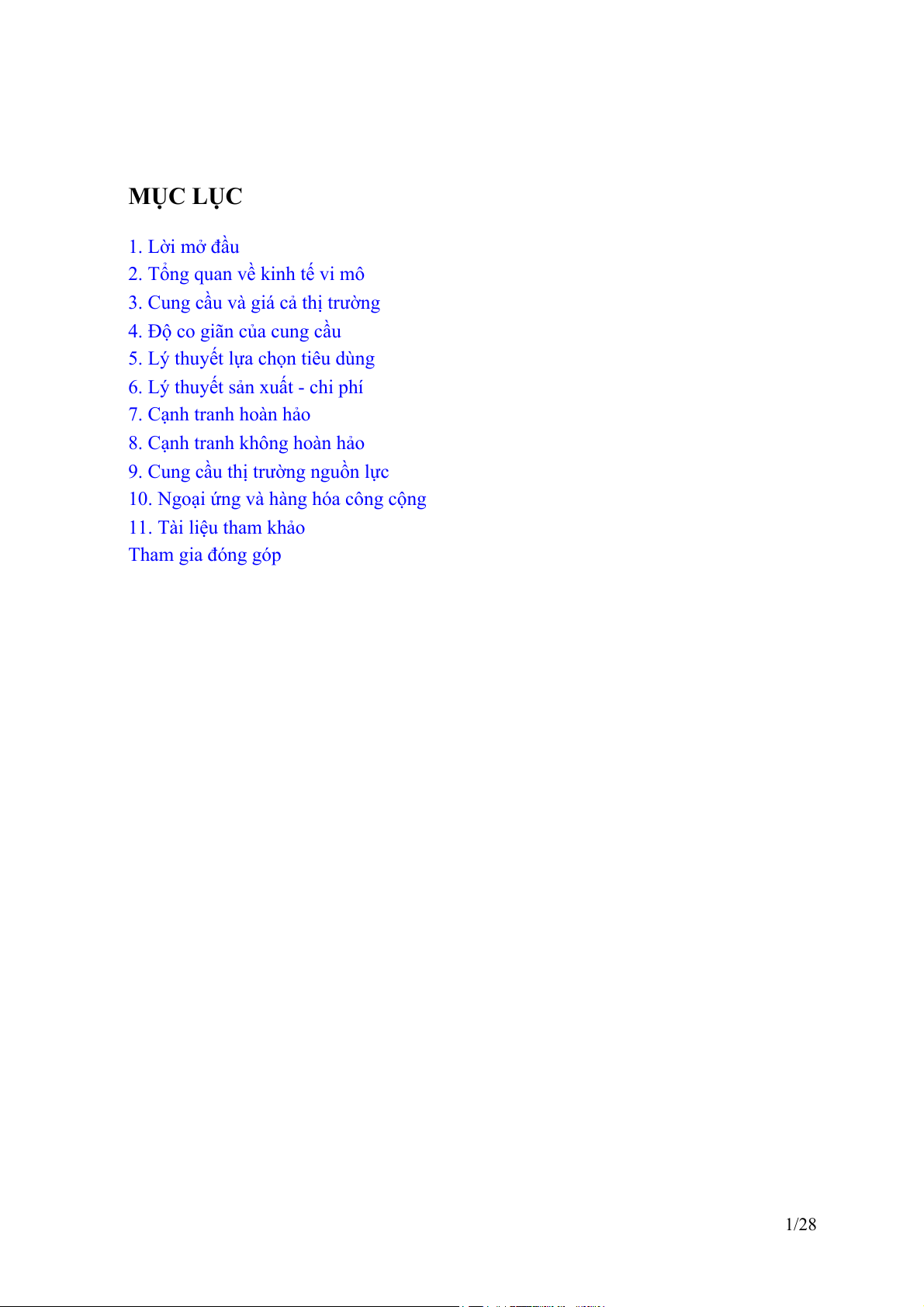 10. Ngoại ứng và hàng hóa công cộng 11. Tài liệu tham khảo Tham gia đóng góp 1/28 Lời mở đầu