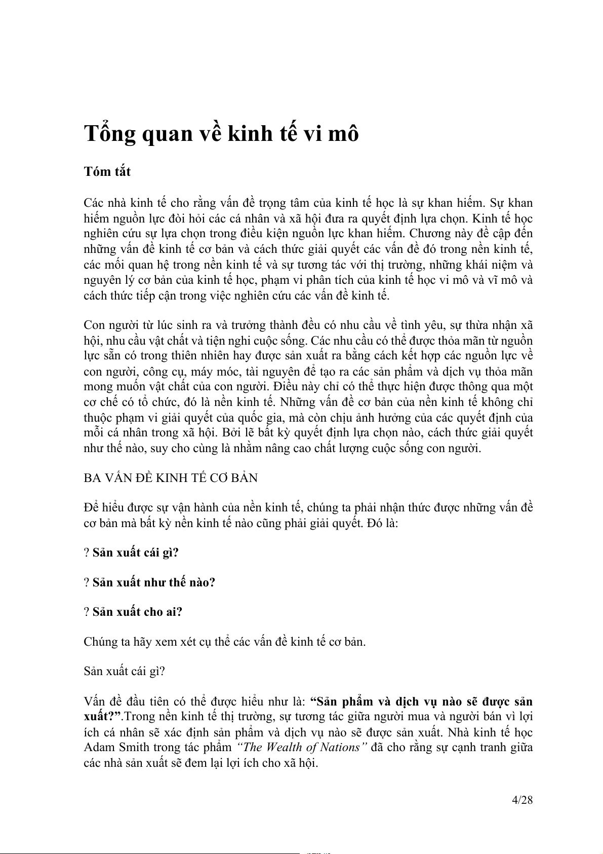 1. Những vấn đề kinh tế cơ bản