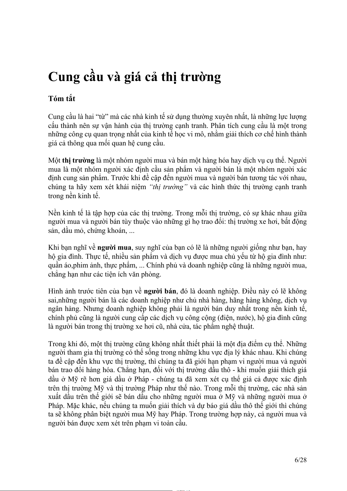 Cung cầu và giá cả thị trường Tóm tắt