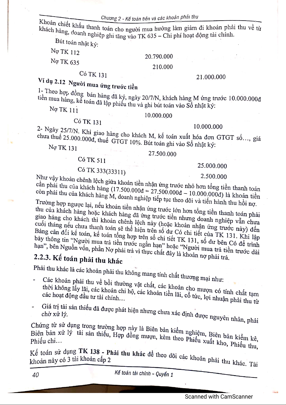 Chương 2 Kế toán tiền và các khoản thu - Giáo trình môn Kế toán tài chính 1 | Trường Đại học Sư phạm Kỹ thuật Thành phố Hồ Chí Minh