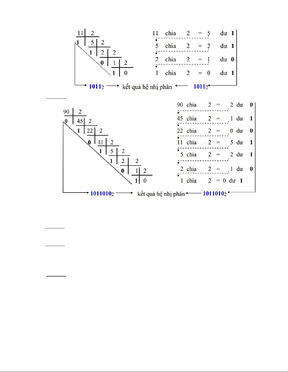 ✓ Chuyển từ hệ thập phân sang hệ nhị phân Ví dụ 3: X = 11 lOMoAR cPSD| 58605085 Ví dụ 4: X = 90