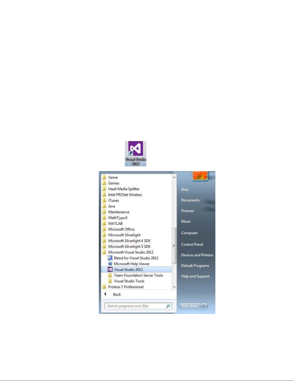 Để khởi ộng Visual studio ta có thể thực hiện bằng cách chạy trực tiếp biểu tượng (Icon) của Visual studio trên hoặc từ menu Start destop