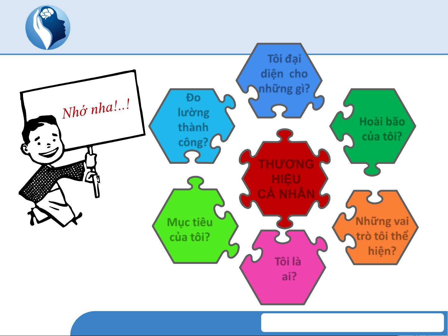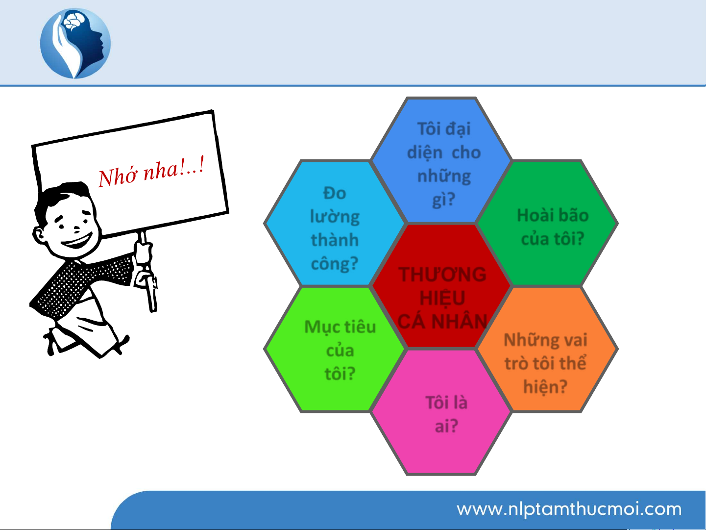Xây dựng thương hiệu cá nhân Tôi đại diện cho những gì? Đo lường thành Hoài bão công? của tôi? THƢƠNG HIỆU CÁ NHÂN Mục tiêu Những vai của tôi? trò tôi thể hiện? Tôi là ai? www.nlp.net.vn