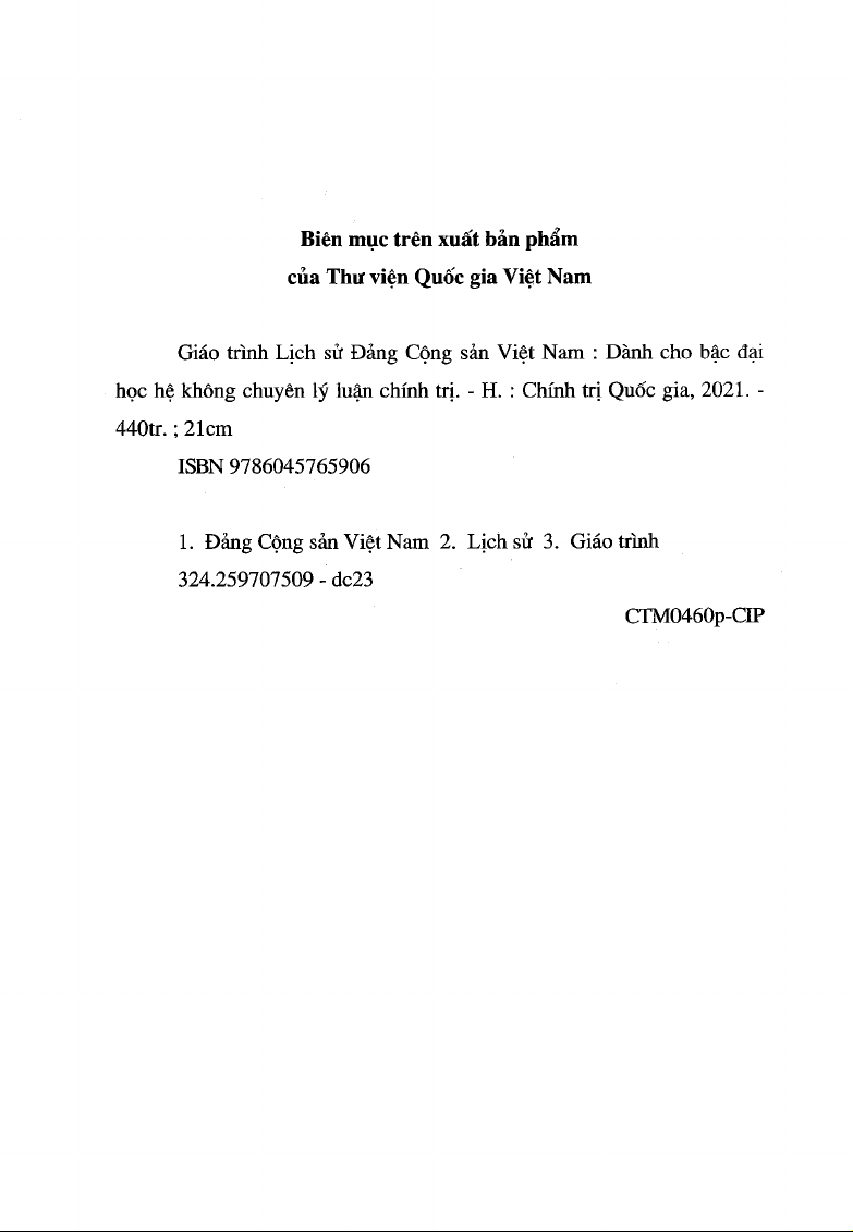 IÀ XUẤT BẢN CHÍNH TRỊ Q u ố c GIA s ự THẬT Giáo trinh Lịch sữ 20146515 GIÁO TRÌNH LỊCHSdr DẲNG CỘNG SÁN VIỆT NAM