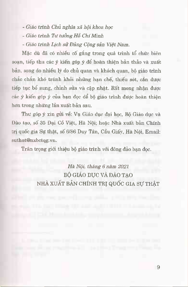giáo trình quốc gia các bộ môn khoa học Mác - Lênin, tư tưởng Hồ
