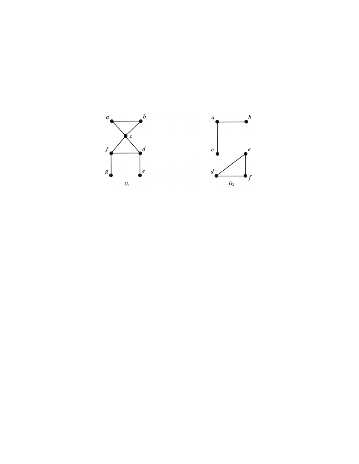 Ví dụ 1.3.3 Trong Hình 1.3.3, đồ thị G1 là liên thông, đồ thị G2 là không liên thông, vì