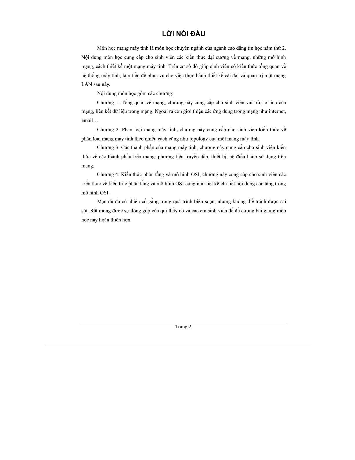 GIÁO TRÌNH MẠNG MÁY TÍNH - CHUYÊN NGÀNH TIN HỌC NĂM 2