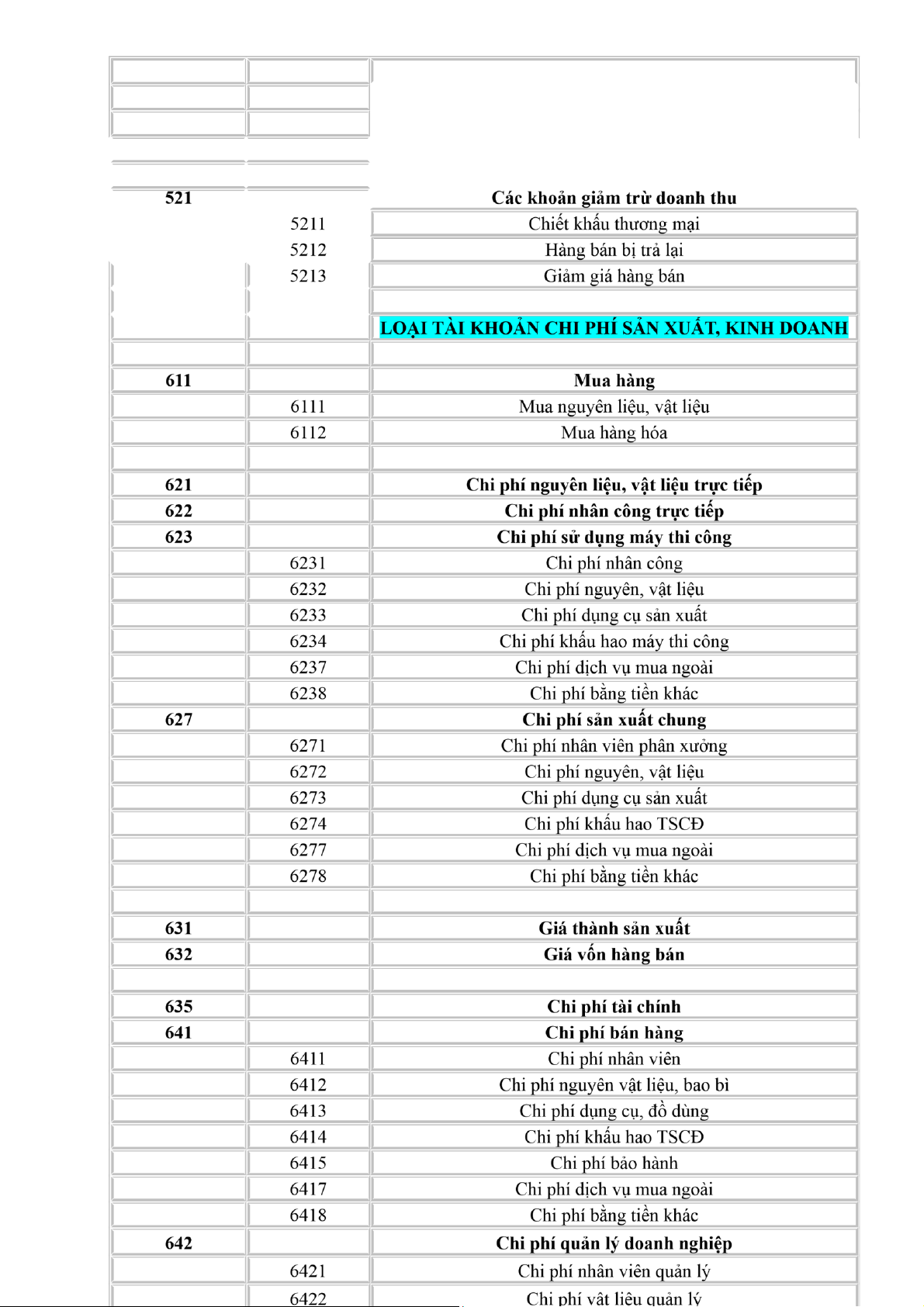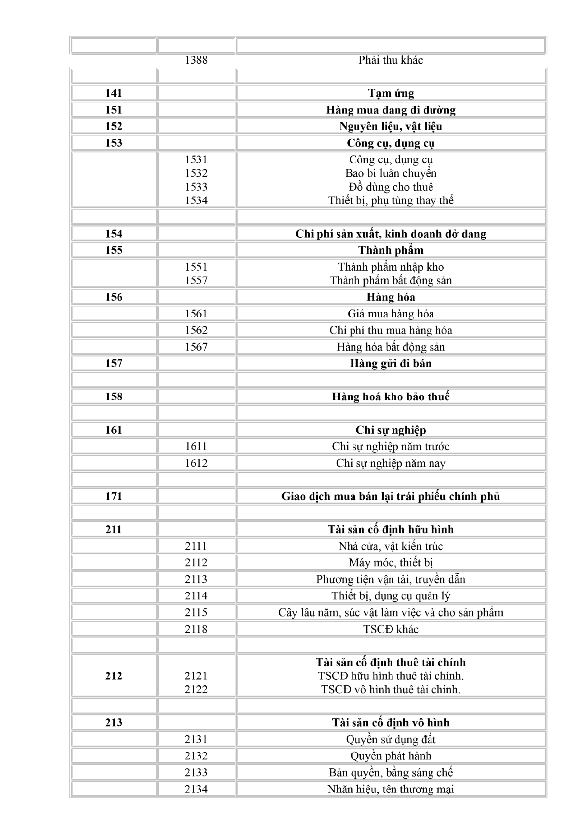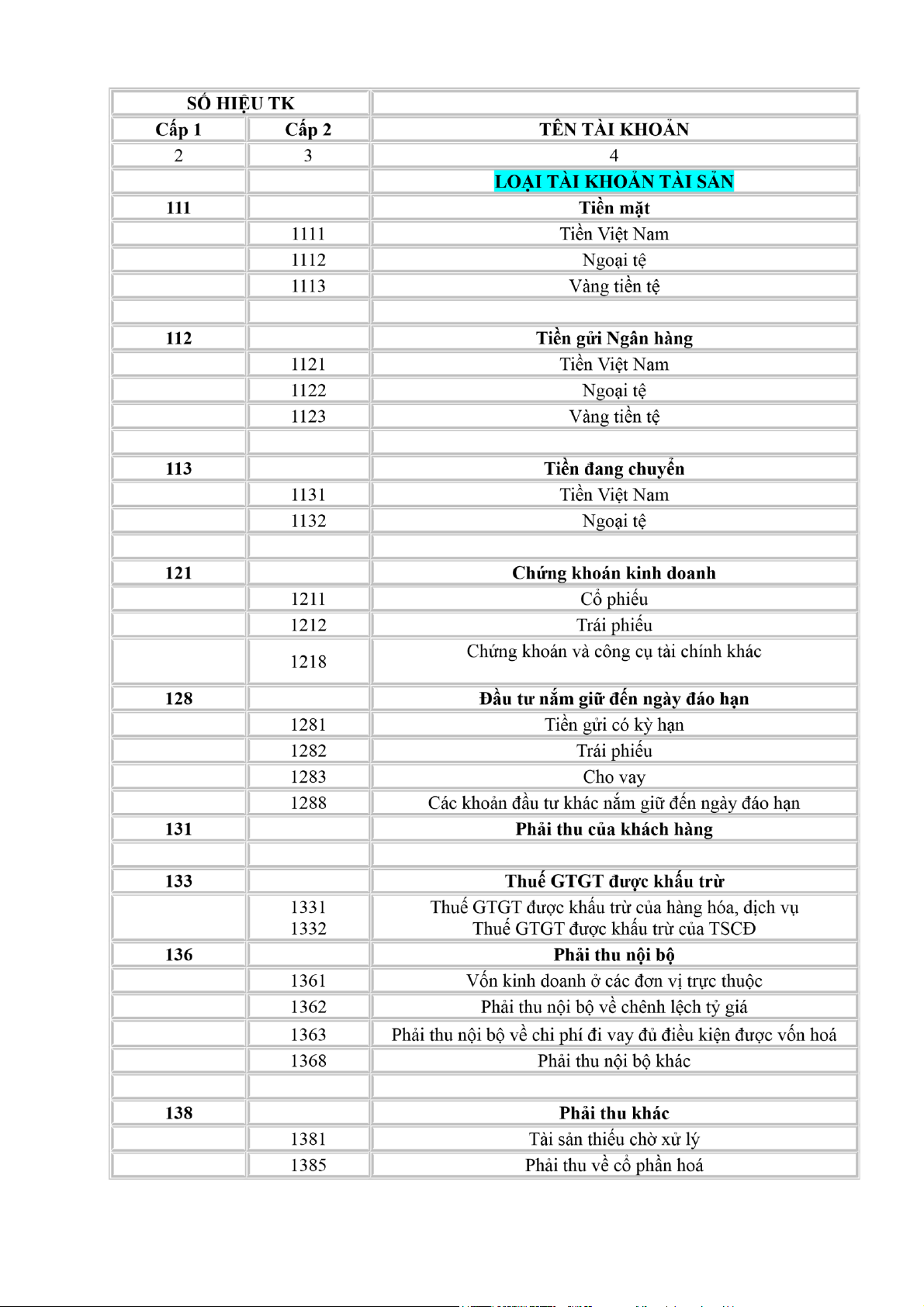 DANH MỤC HỆ THỐNG TÀI KHOẢN KẾ TOÁN DOANH NGHIỆP